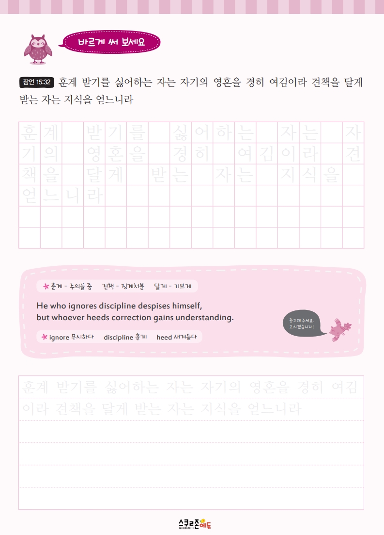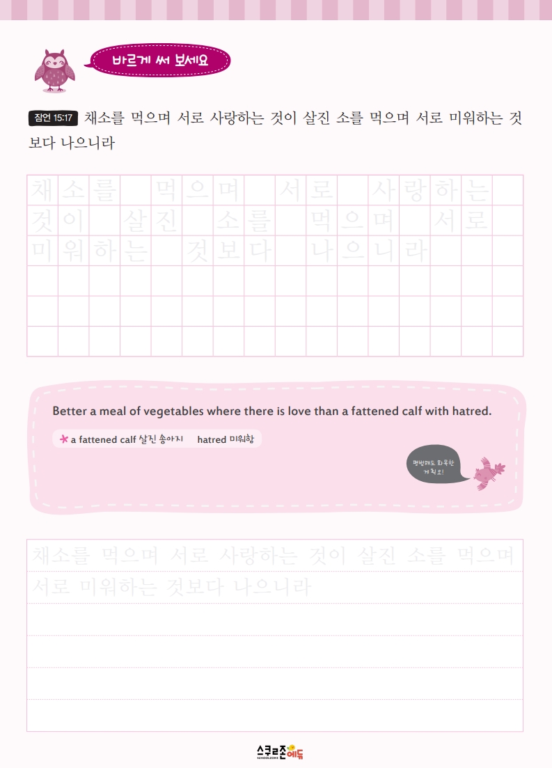 꾸준한 따라쓰기로 올바른 습관과 성품을 기를 수 있습니다.