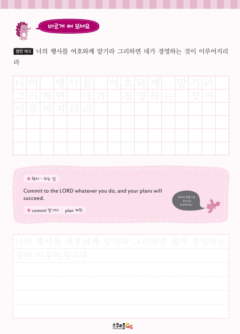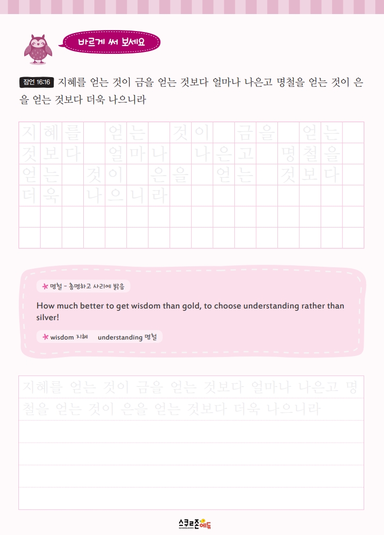 <잠언>의 말씀을 따라 쓰며 바른 글씨체와 문학적 표현력을 함께 키웁니다.
