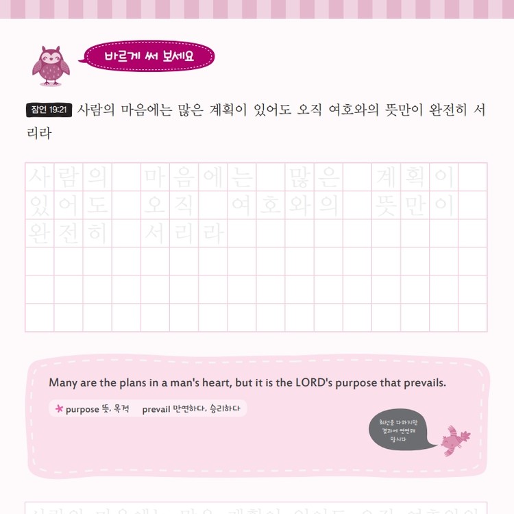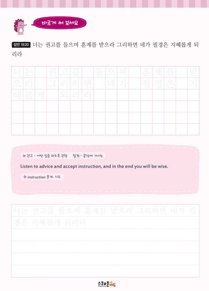 <잠언>의 말씀을 따라 쓰며 바른 글씨체와 문학적 표현력을 함께 키웁니다.