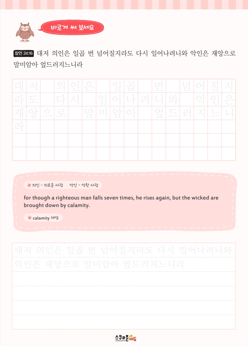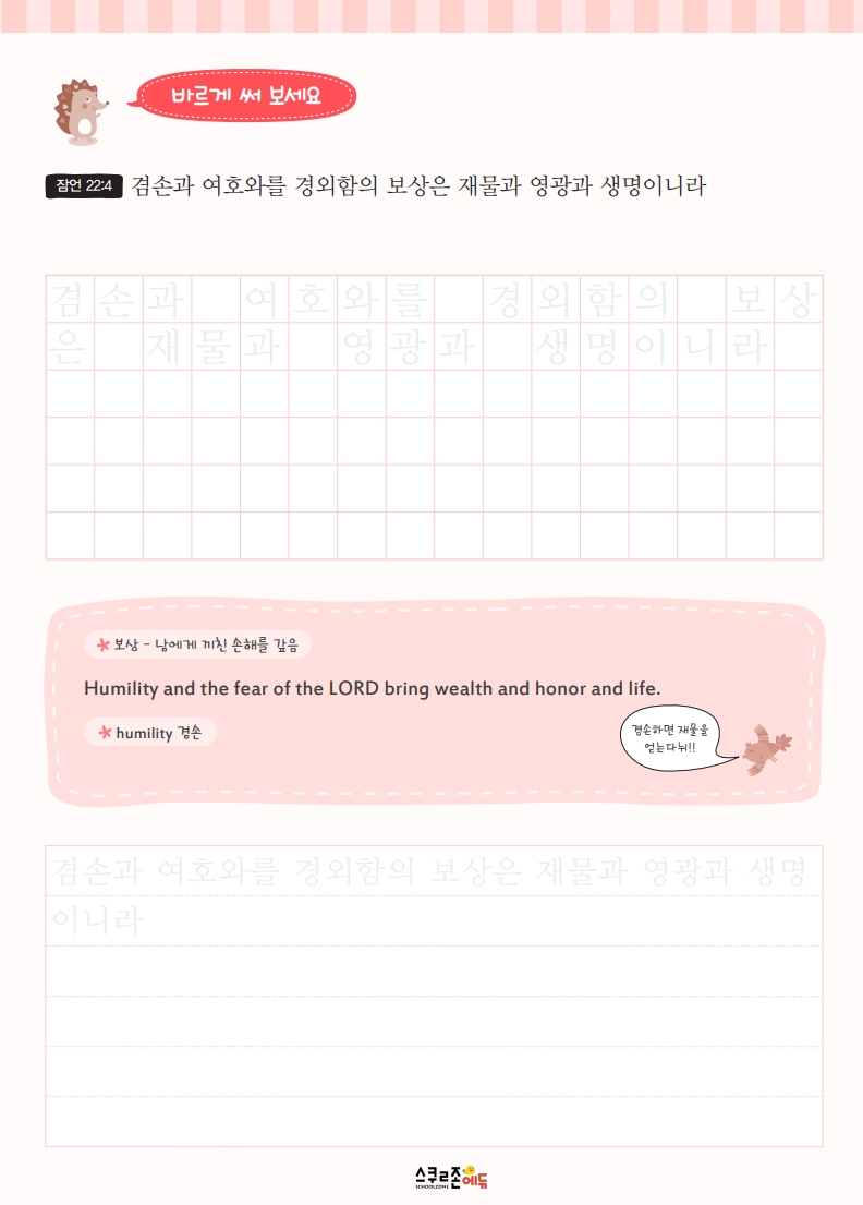 꾸준한 따라쓰기로 올바른 습관과 성품을 기를 수 있습니다.