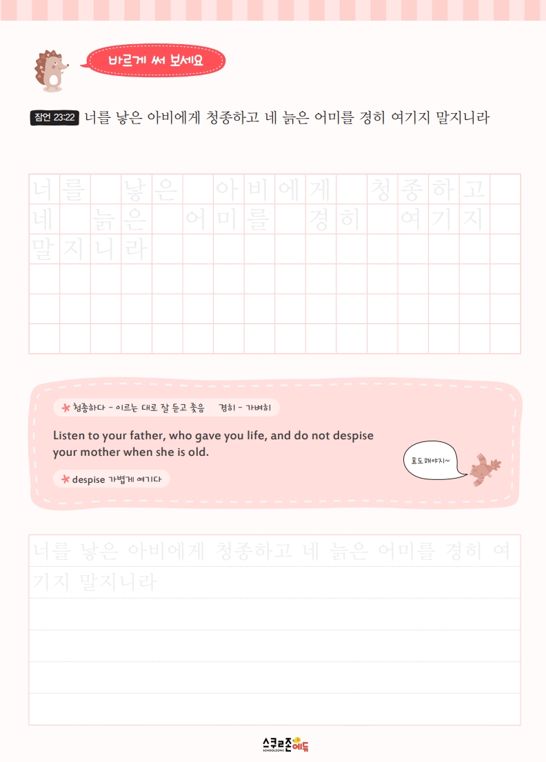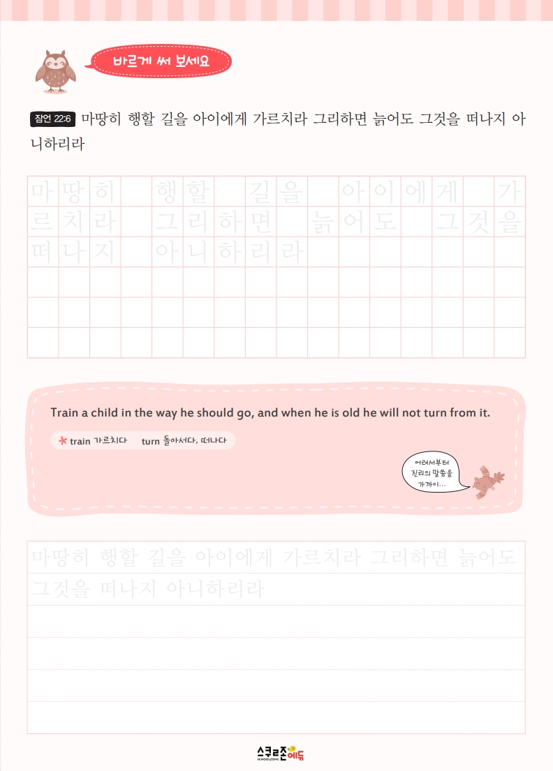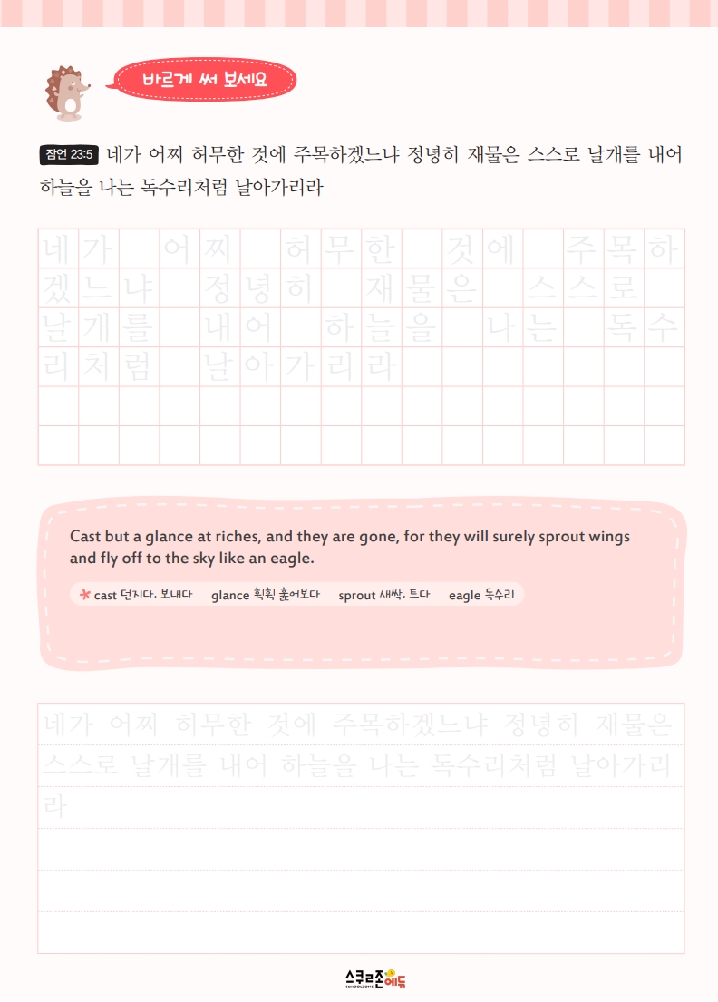 <잠언>의 말씀을 따라 쓰며 바른 글씨체와 문학적 표현력을 함께 키웁니다.