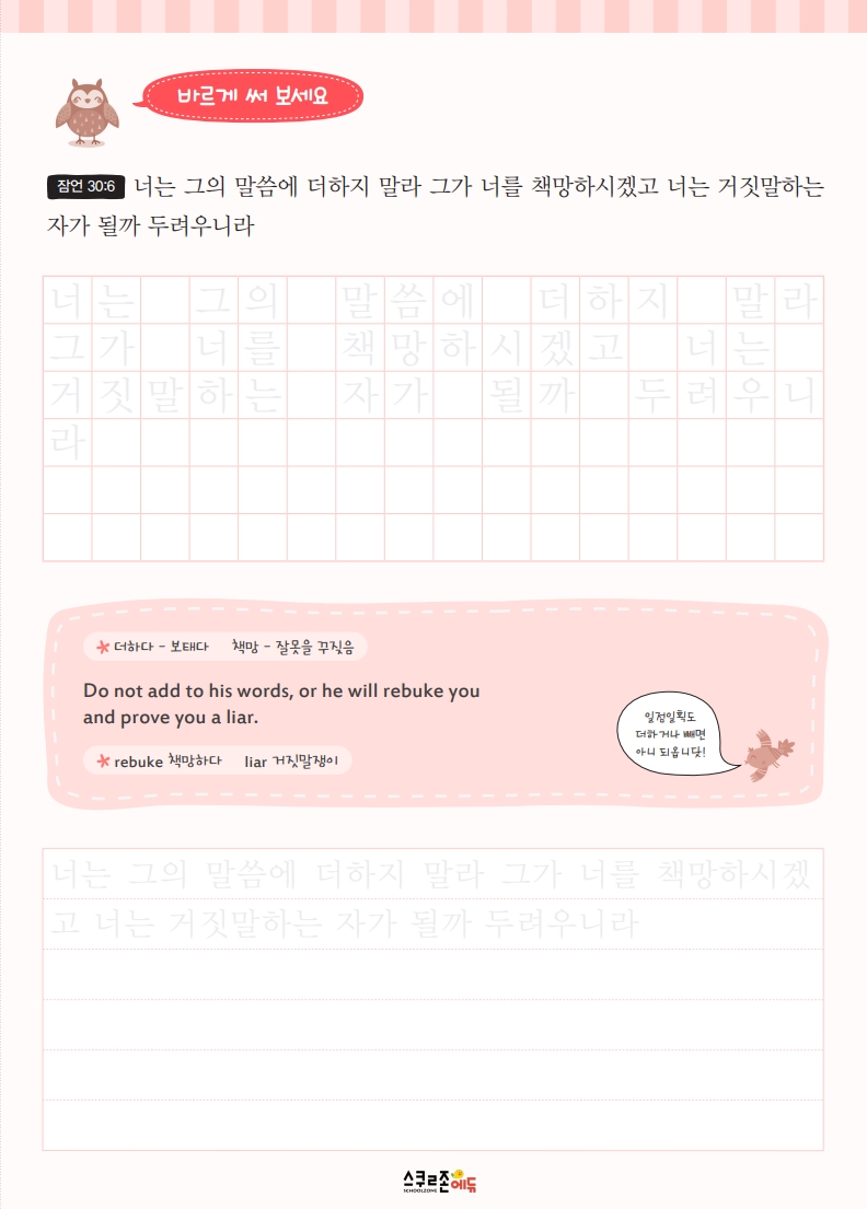 읽고, 쓰고, 암송하는 과정을 통해 말씀을 내면화하고 자존감과 표현력이 향상됩니다.