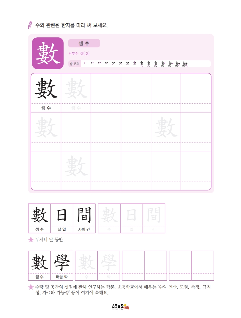 <스스로 급수한자>로 반복 연습하여 자격증은 물론, 어휘력 만렙 되자!