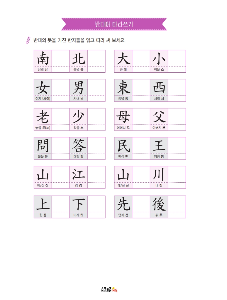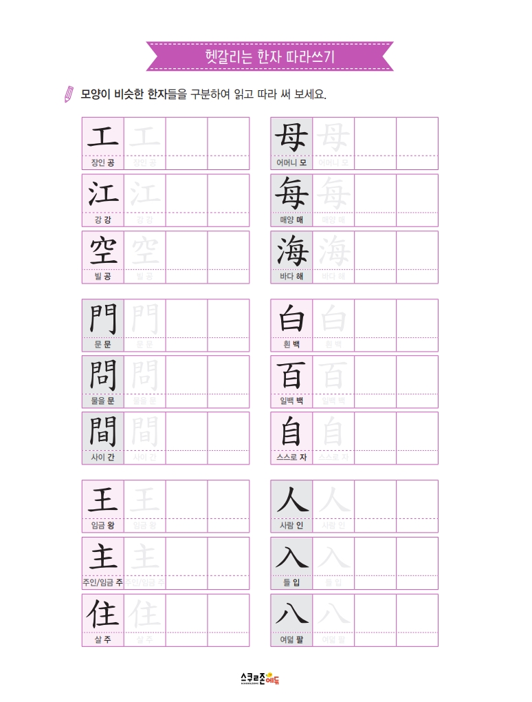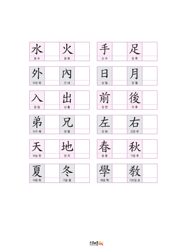 하루 하루 꾸준히 쓰면 7급 신출한자 50자를 자연스럽게 익힐 수 있어요.