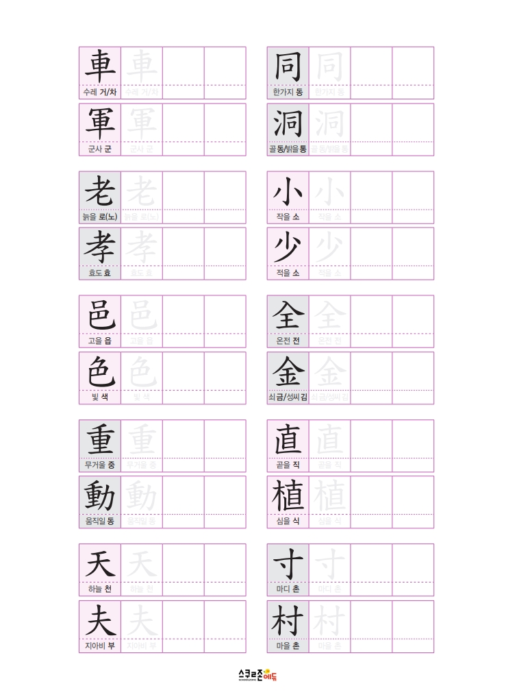 스스로 급수한자 7급 따라쓰기 시트지 8