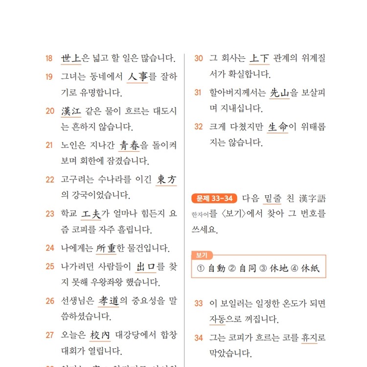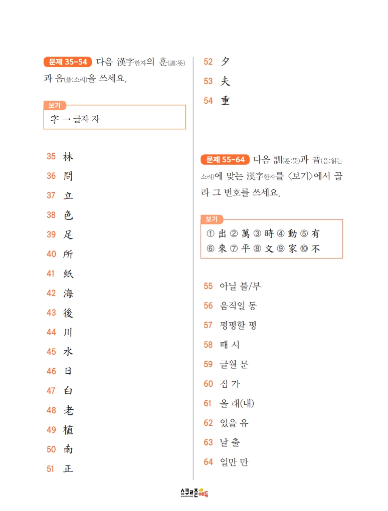 스스로 급수한자 7급 문제집 시트지5