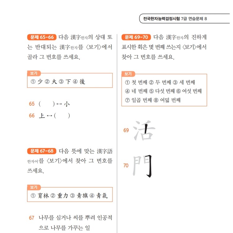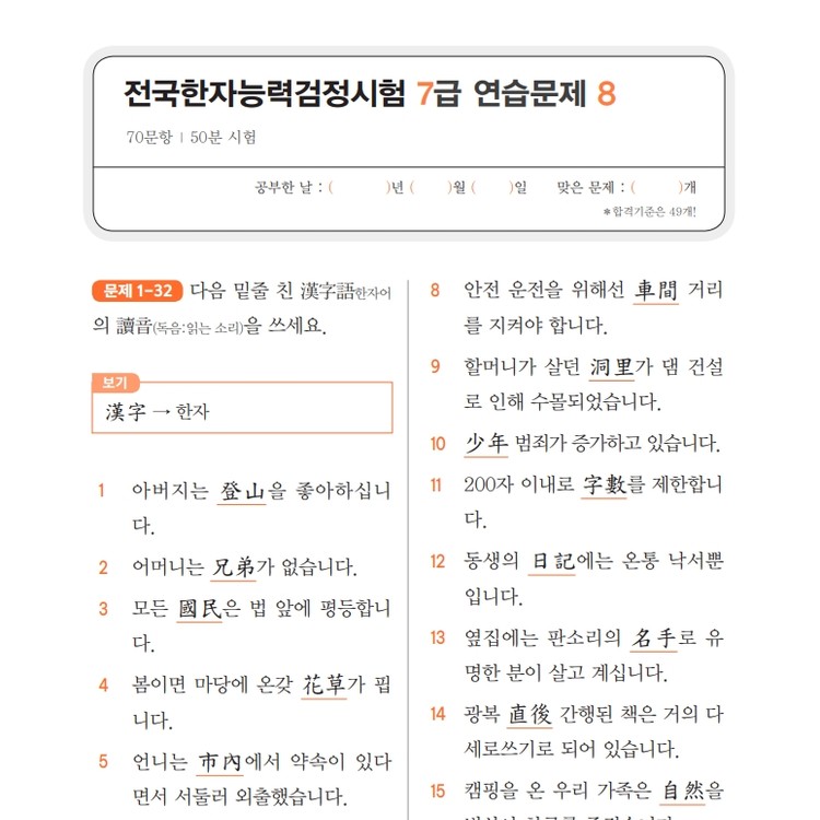 스스로 급수한자 7급 문제집 시트지 5
