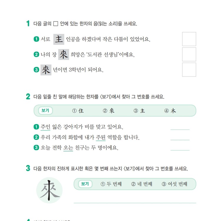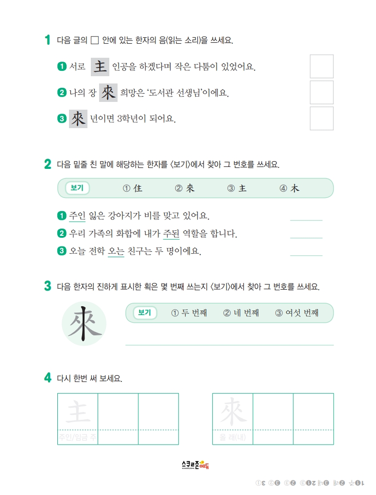 바른 필순에 따라 쓰기를 연습, 생활문 예시로 한자어의 쓰임을 자연스럽게 이해하도록 도와줘요.