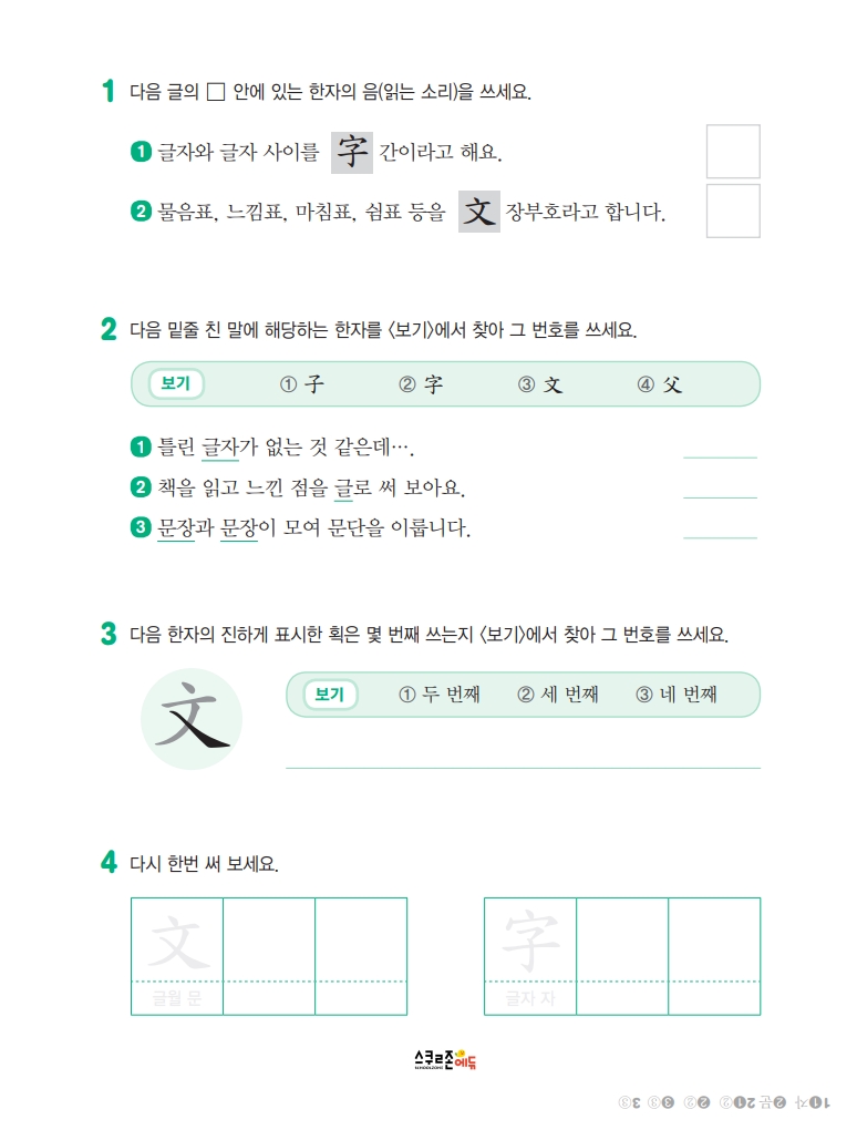 한자의 모양 · 소리 · 뜻을 연결하며 어휘력과 문해력이 동시에 강화돼요.
