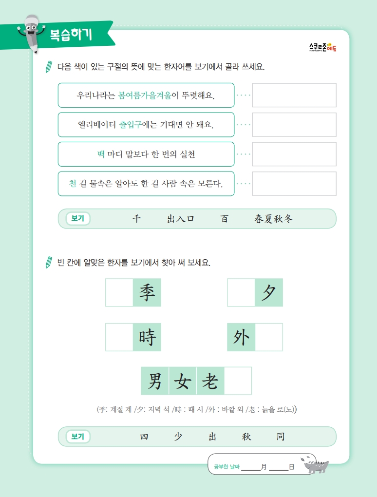 <스스로 급수한자>로 반복 연습하여 자격증은 물론, 어휘력 만렙 되자!