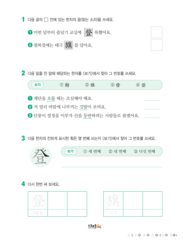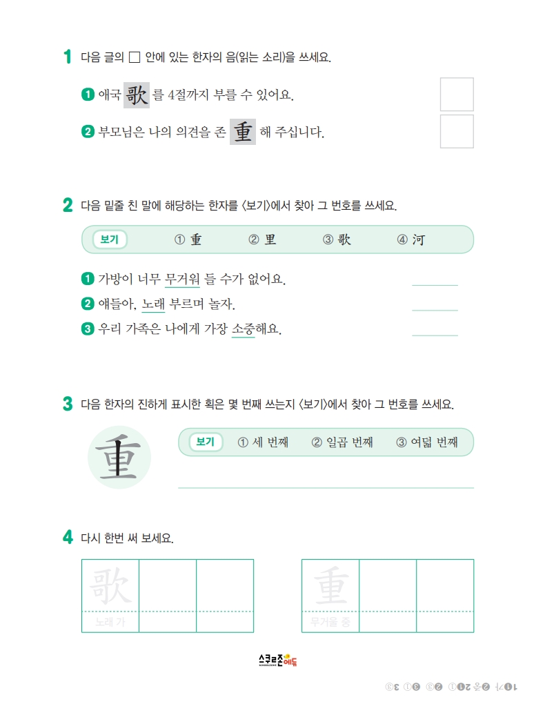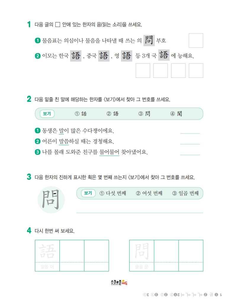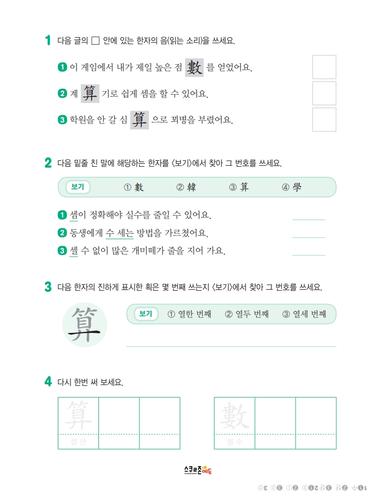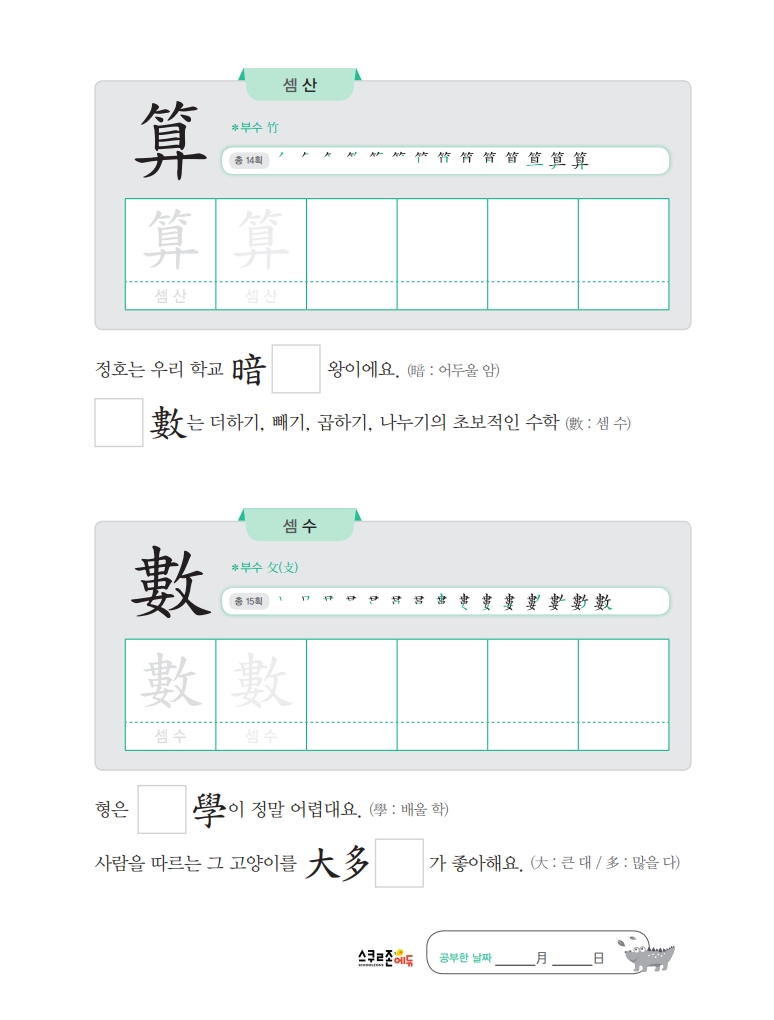스스로 급수한자 7급 익힘책 시트지 5