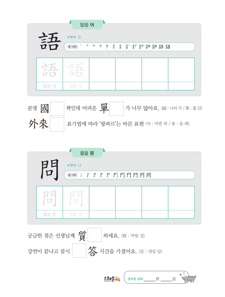<스스로 급수한자>로 반복 연습하여 자격증은 물론, 어휘력 만렙 되자!