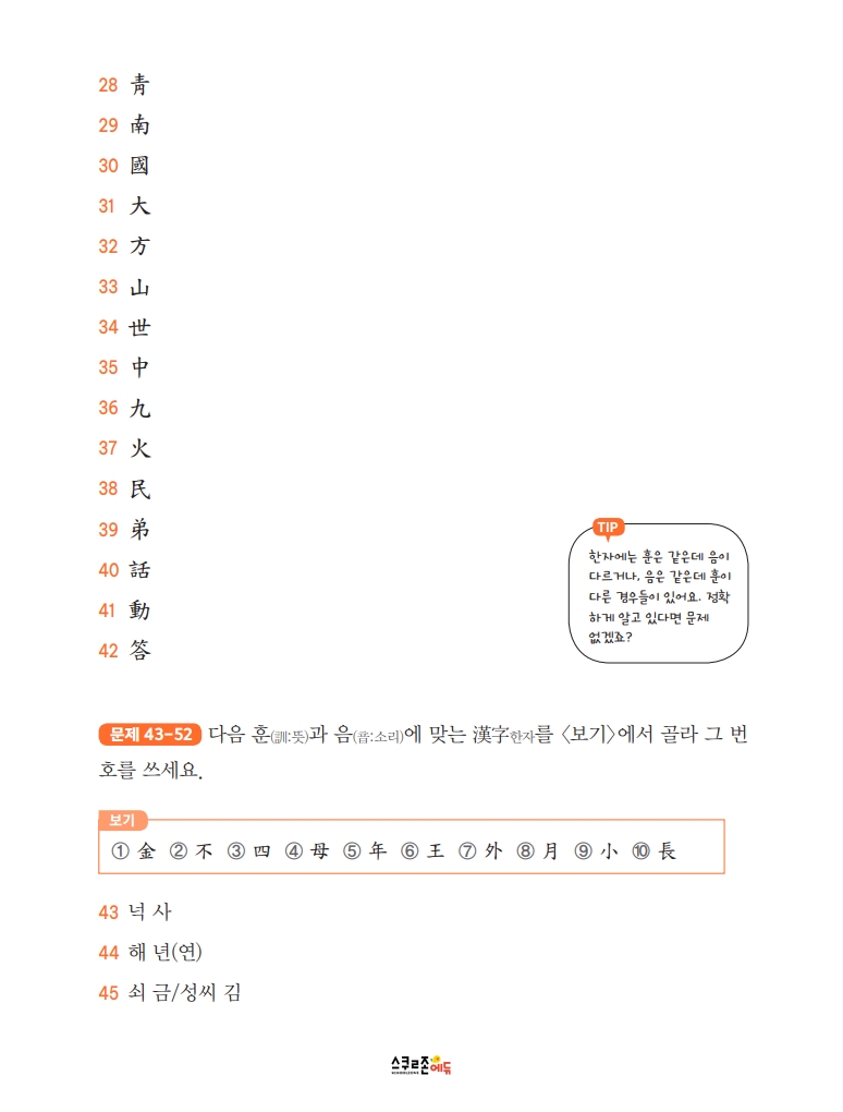 시험 시간(50분)을 맞춰 풀며 긴장감을 익히며, 답안지를 오려 사용, 채점하며 실전 감각을 높여요.