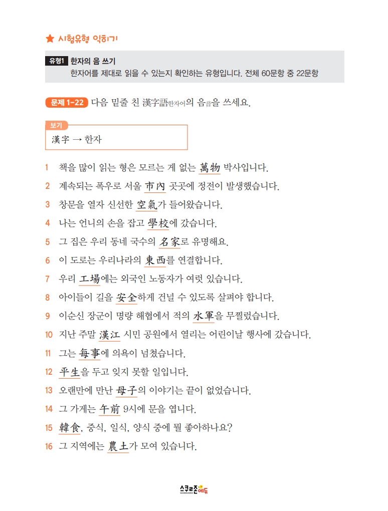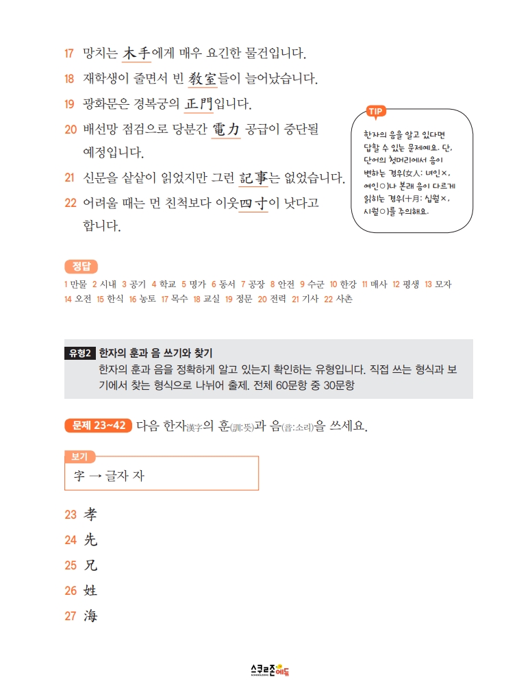 한자능력검정시험에 맞춘 체계적인 한자 학습