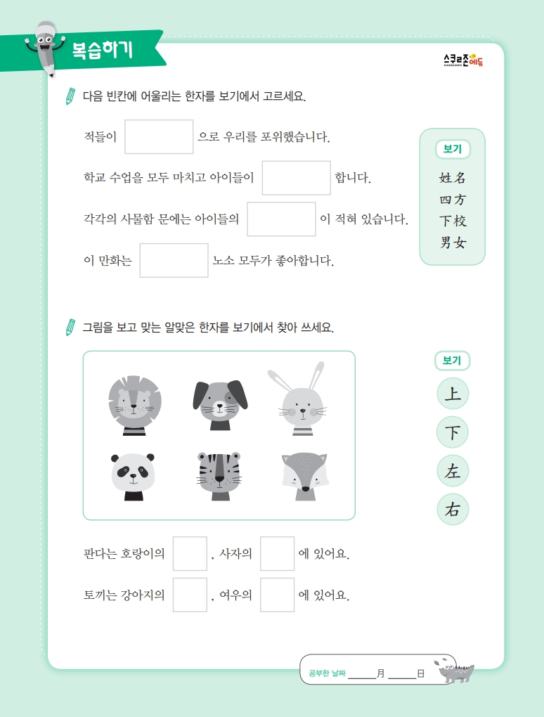 사자성어와 반대어 쓰기를 통해 어휘력도 함께 키울 수 있어요.