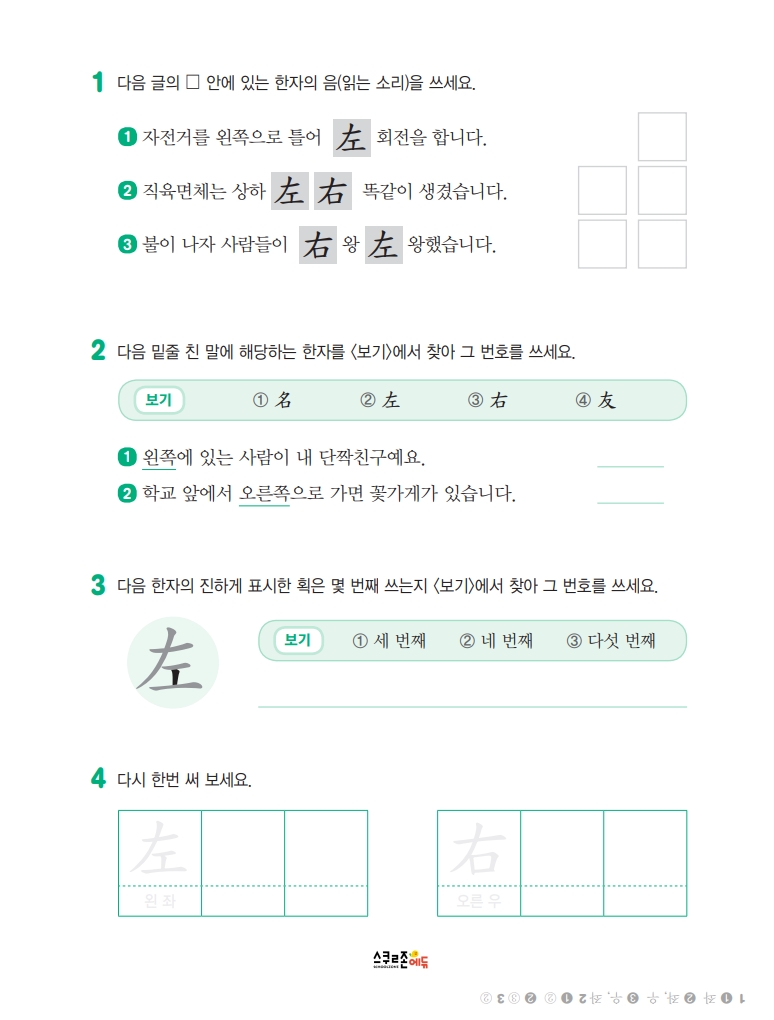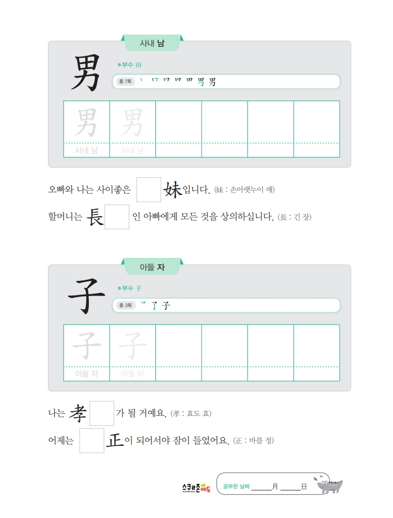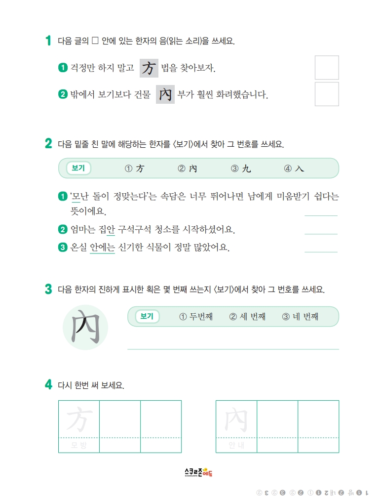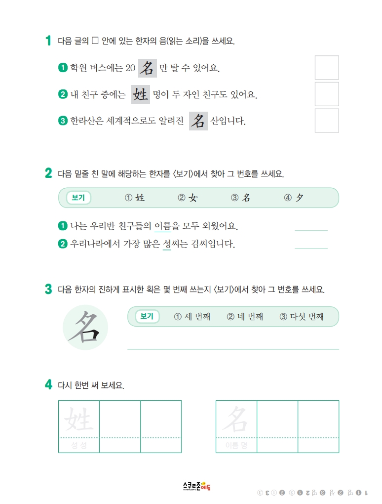 스스로 급수한자 7급Ⅱ 익힘책 시트지 1