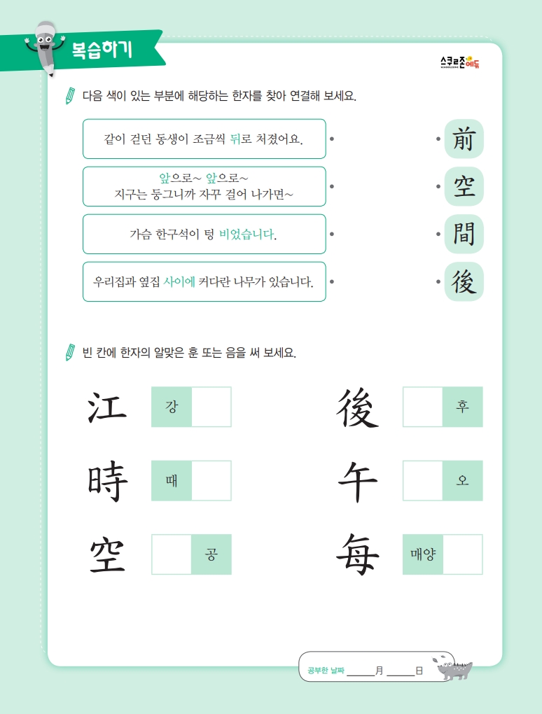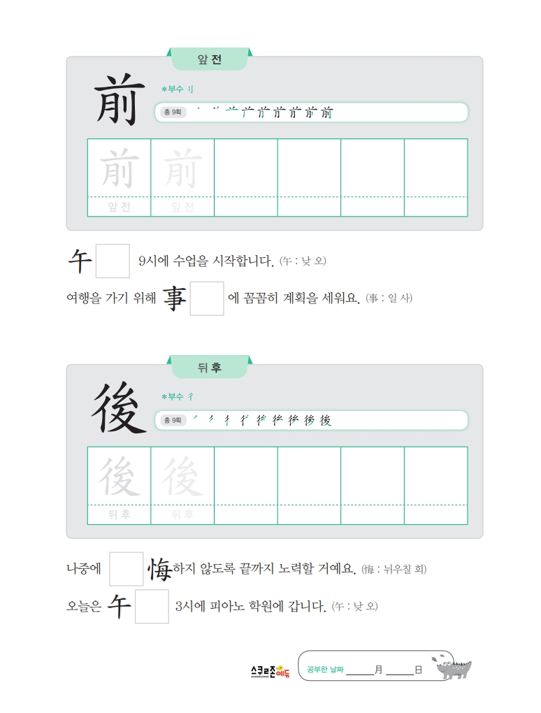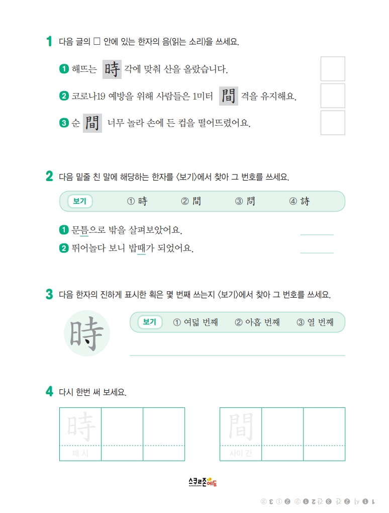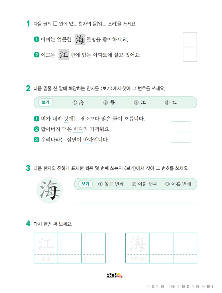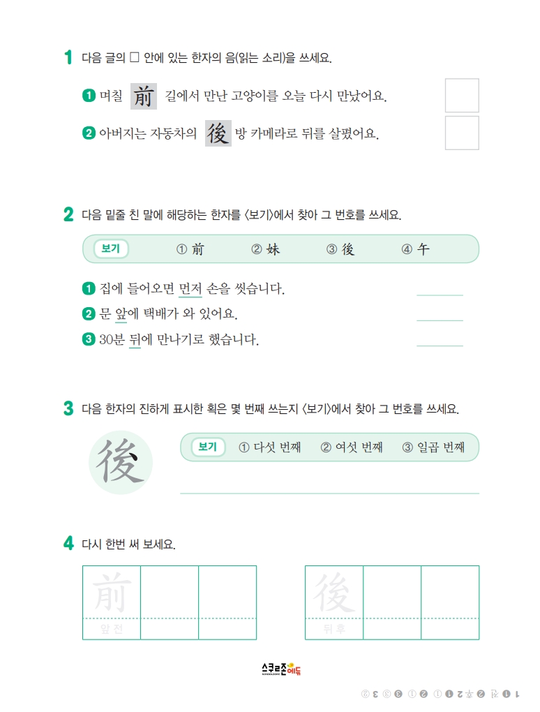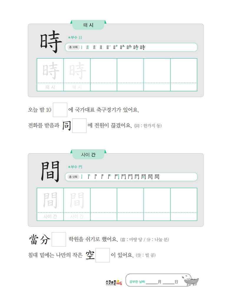 스스로 급수한자 7급Ⅱ 익힘책 시트지 2