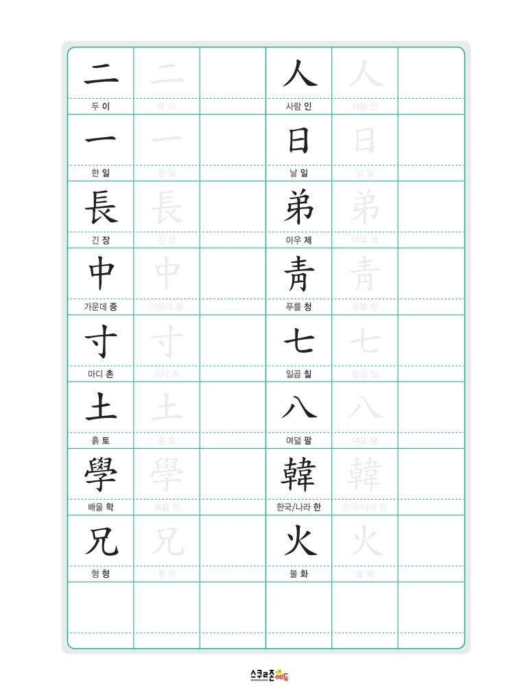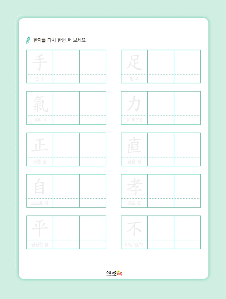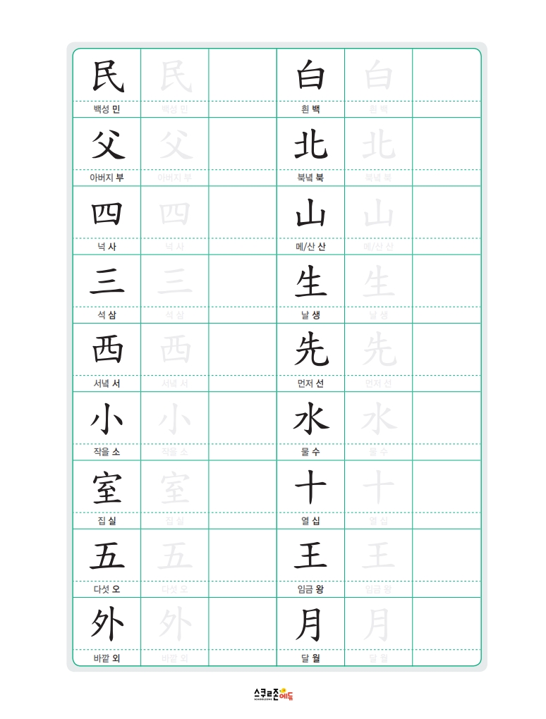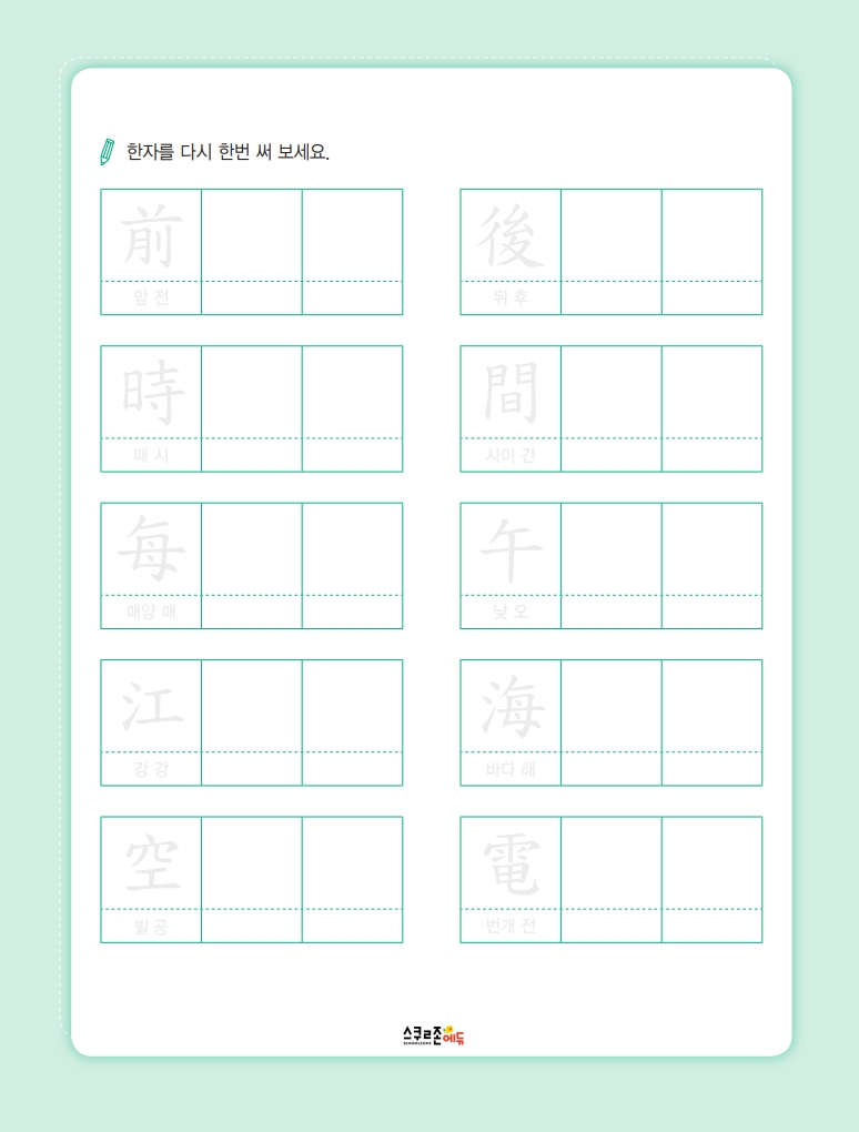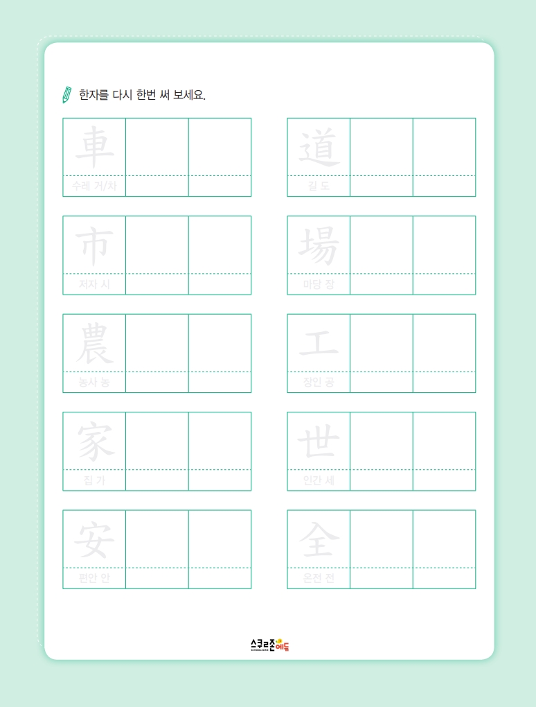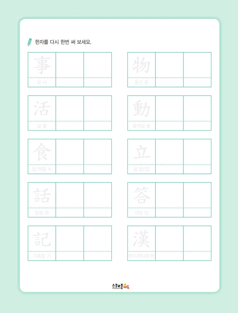 스스로 급수한자 7급Ⅱ 익힘책 시트지 6