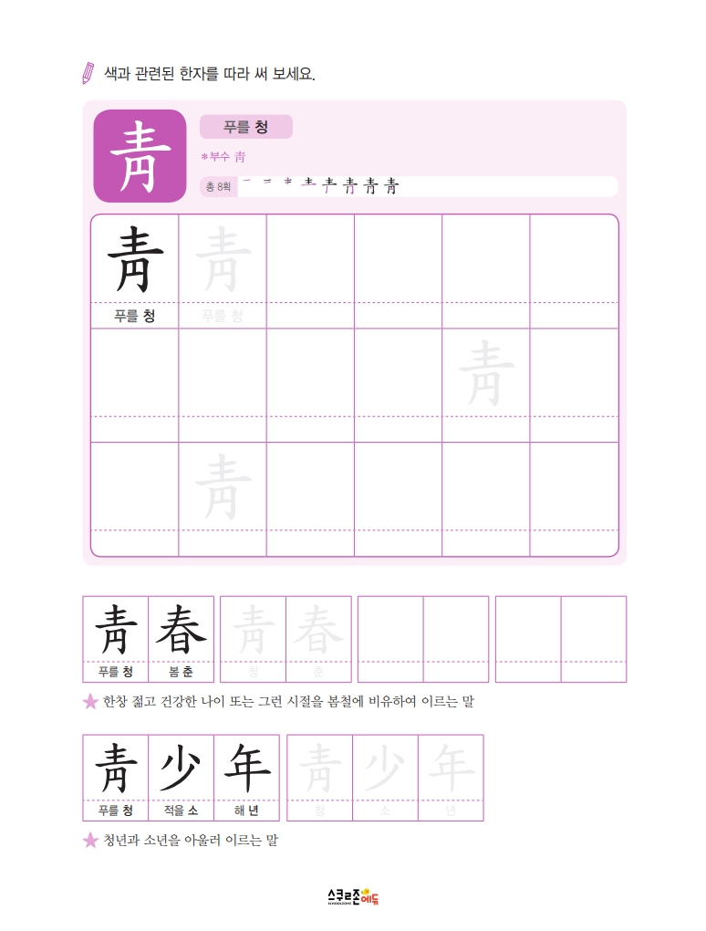 하루 하루 꾸준히 쓰면 8급 한자 50자를 자연스럽게 익힐 수 있어요.