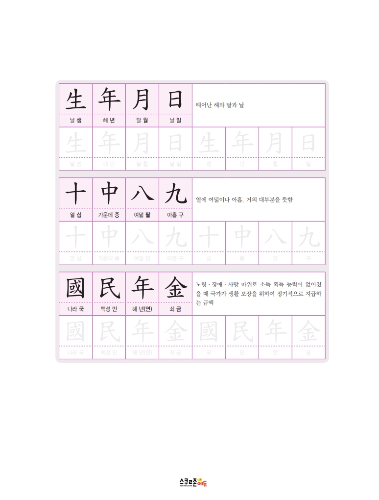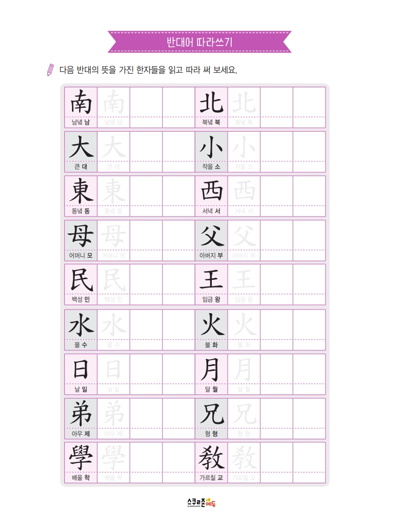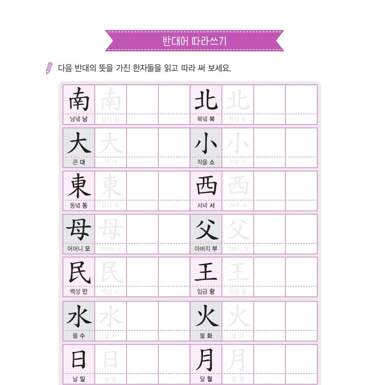 하루 하루 꾸준히 쓰면 8급 한자 50자를 자연스럽게 익힐 수 있어요.