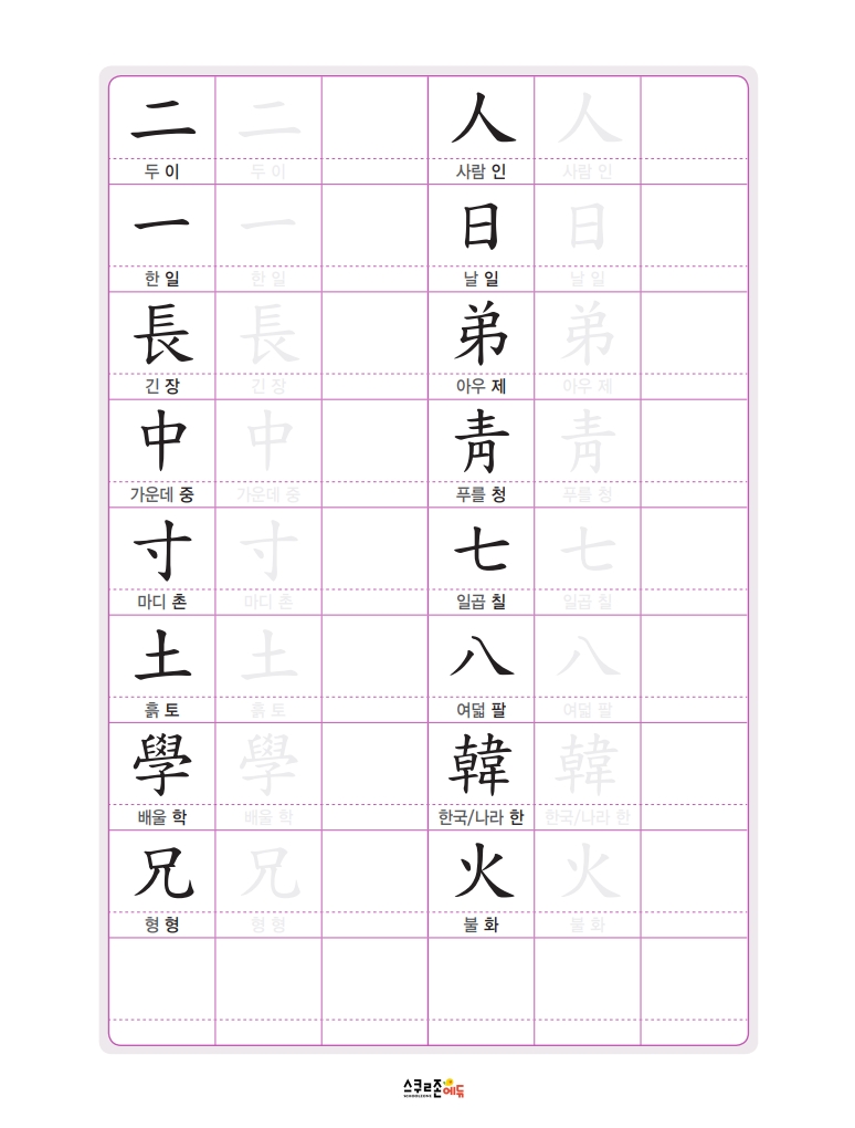 스스로 급수한자 8급 따라쓰기 시트지 7