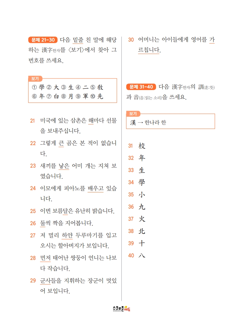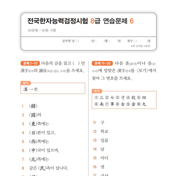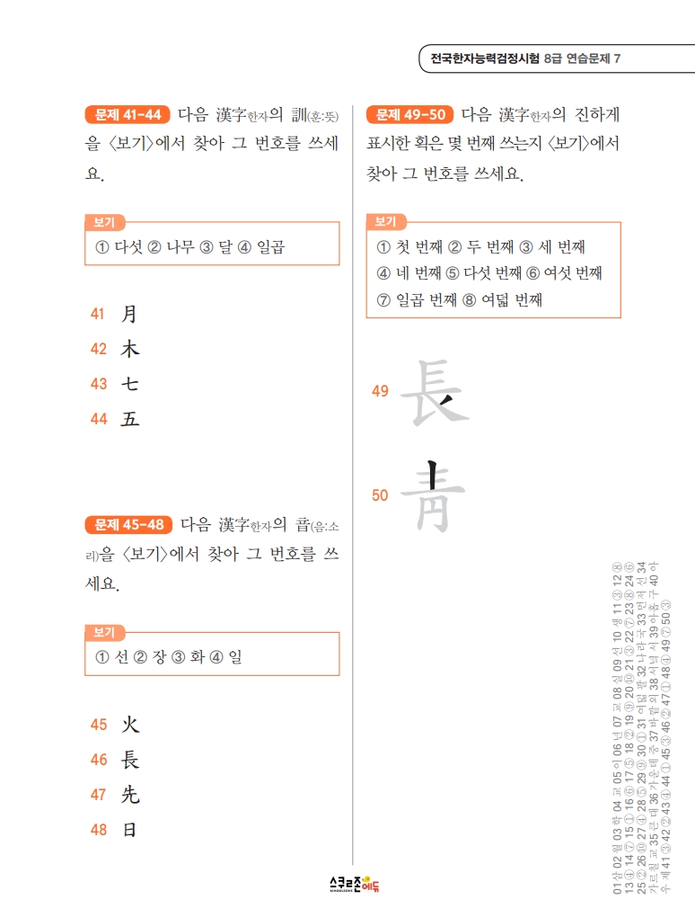 시험 시간(50분)을 맞춰 풀며 긴장감을 익히며, 답안지를 오려 사용, 채점하며 실전 감각을 높여요.