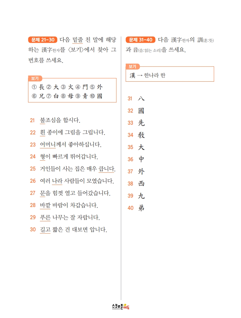 한자능력검정시험에 맞춘 체계적인 한자 학습