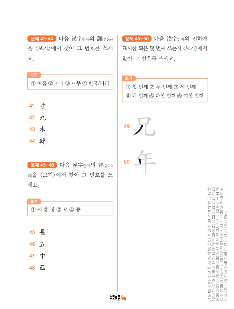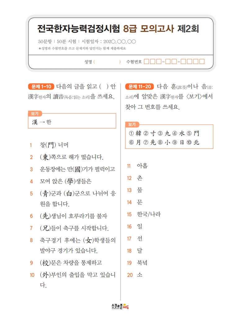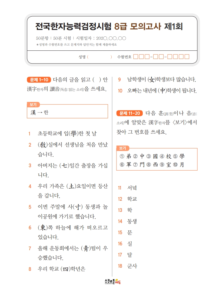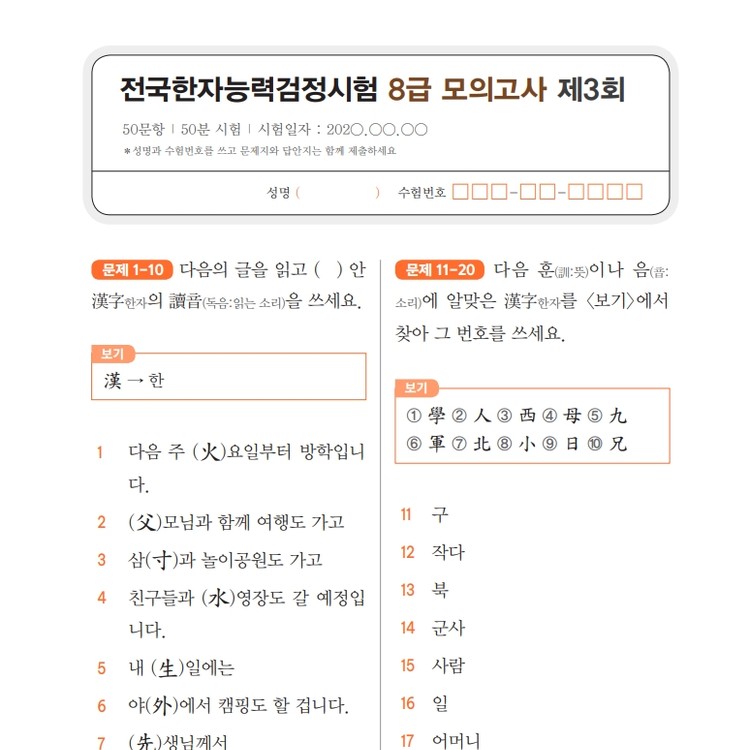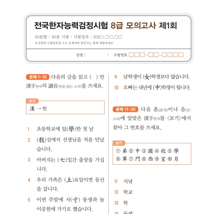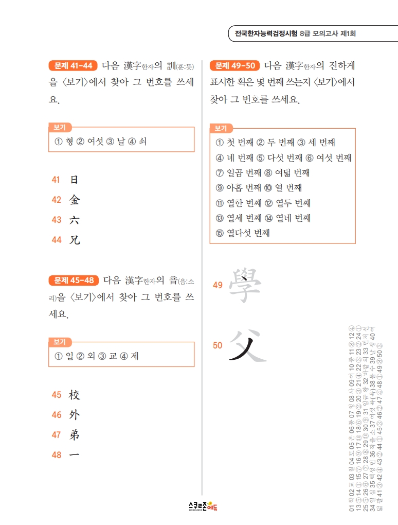 시험 시간(50분)을 맞춰 풀며 긴장감을 익히며, 답안지를 오려 사용, 채점하며 실전 감각을 높여요.