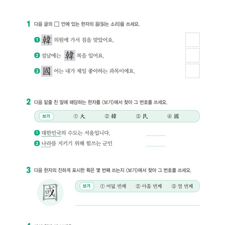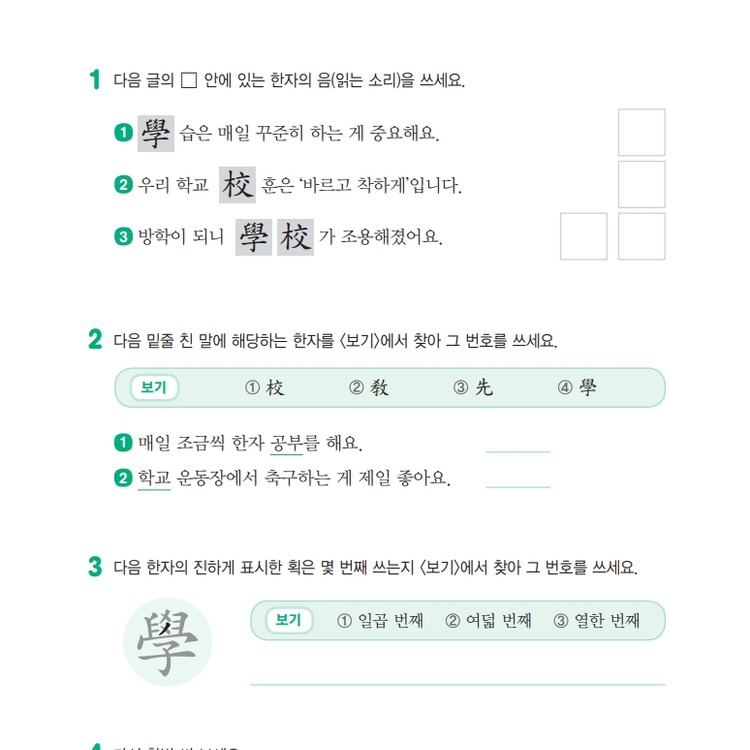 바른 필순에 따라 쓰기를 연습, 생활문 예시로 한자어의 쓰임을 자연스럽게 이해하도록 도와줘요.