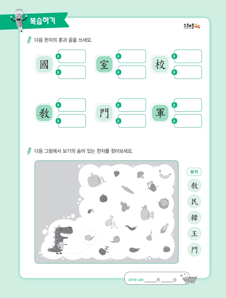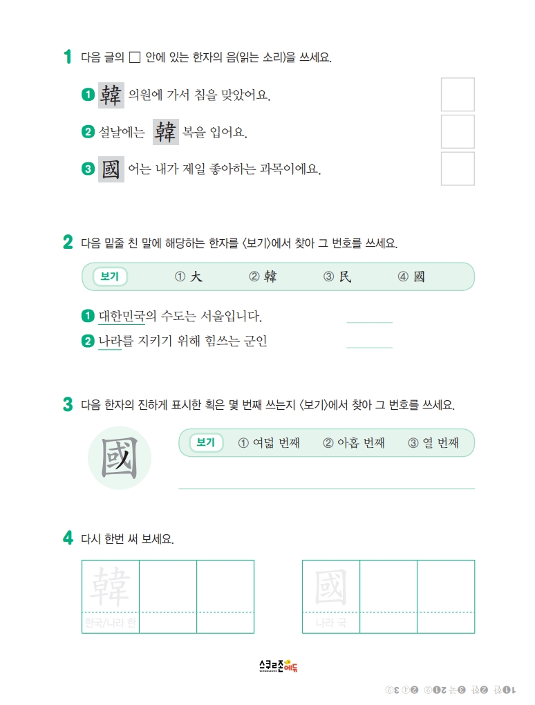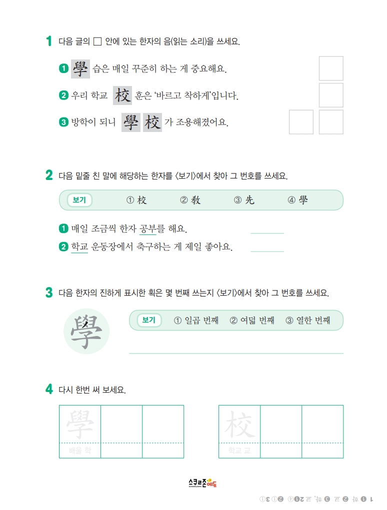 한자의 모양 · 소리 · 뜻을 연결하며 어휘력과 문해력이 동시에 강화돼요.