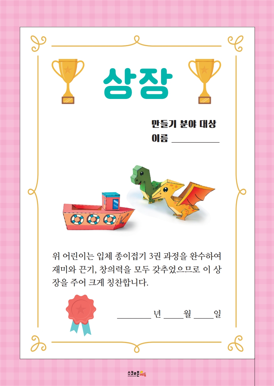뚝딱뚝딱 입체 종이접기 3권( 탈것(하늘-물), 공룡, 집) 시트지4
