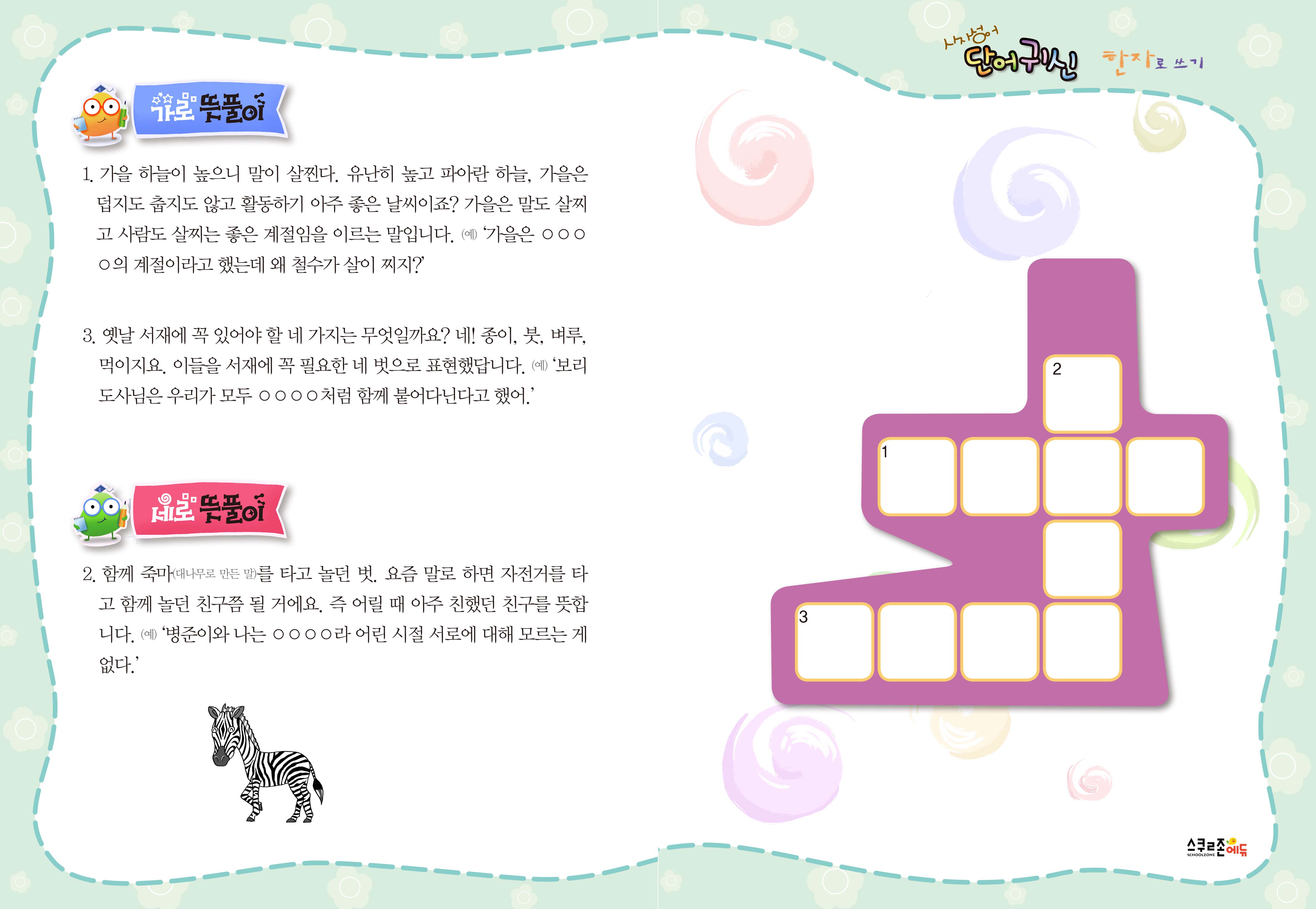 한자 퍼즐과 단어장으로 사자성어를 쉽고 재미있게 익히며