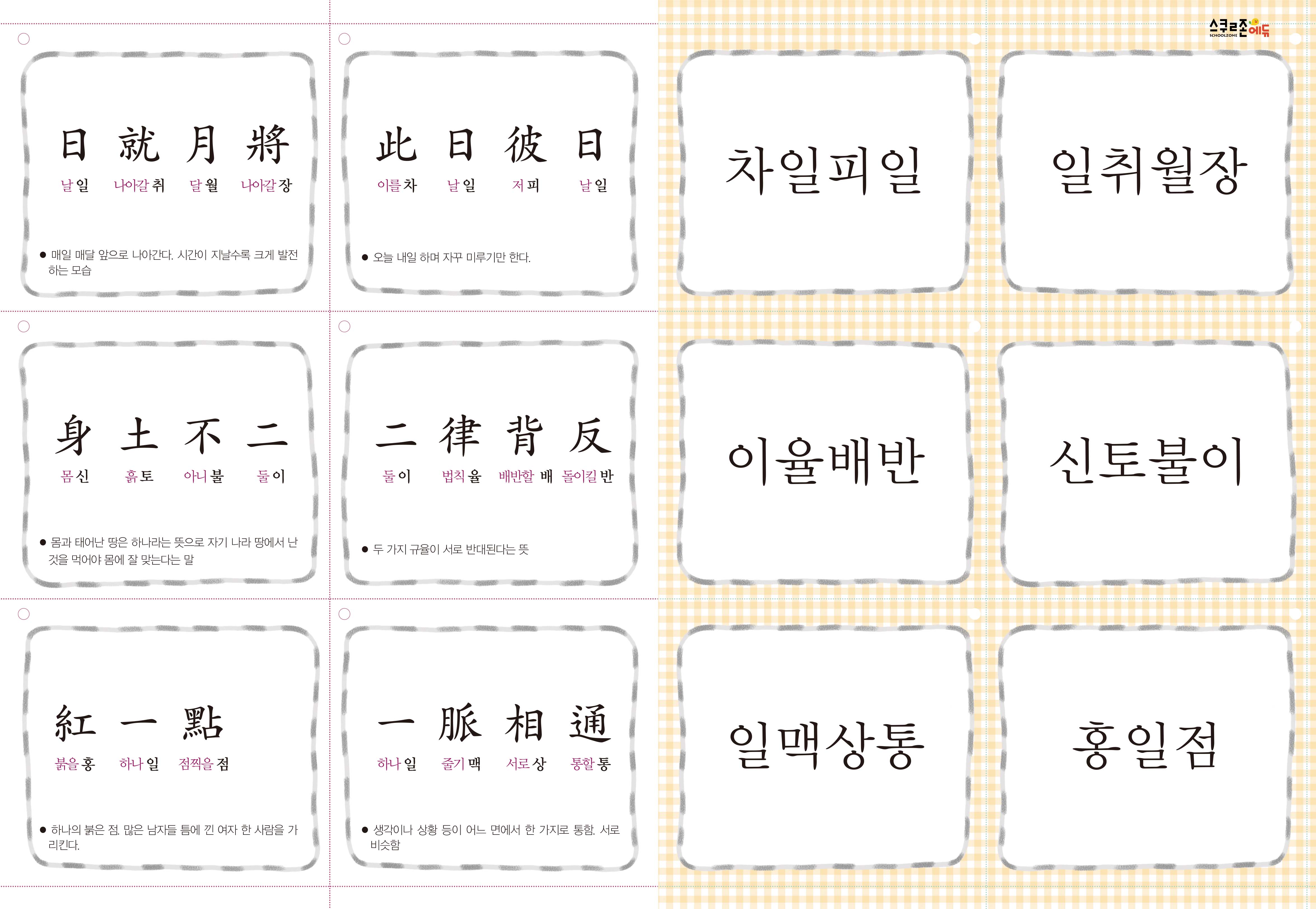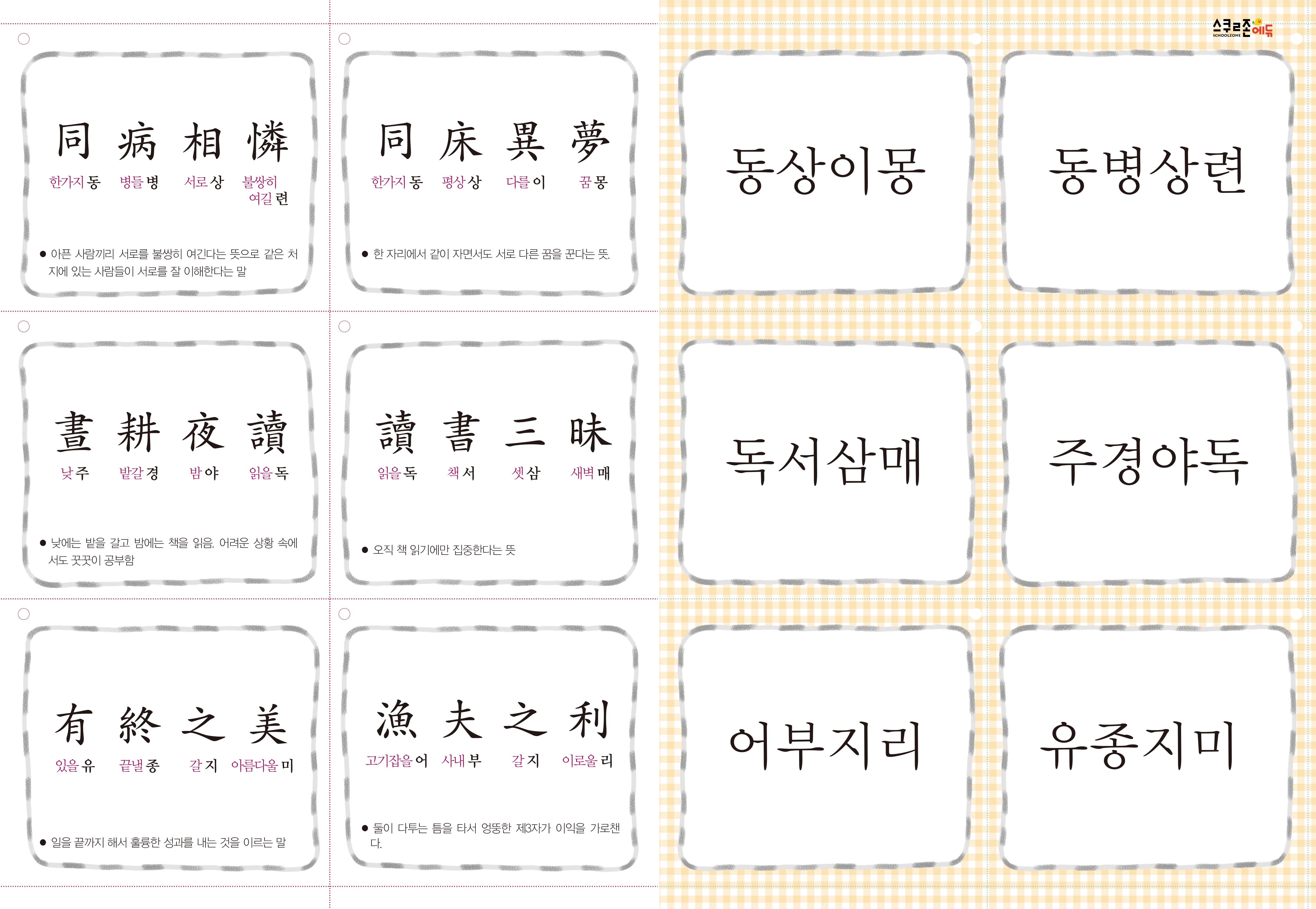 한자 퍼즐과 단어장으로 사자성어를 쉽고 재미있게 익히며