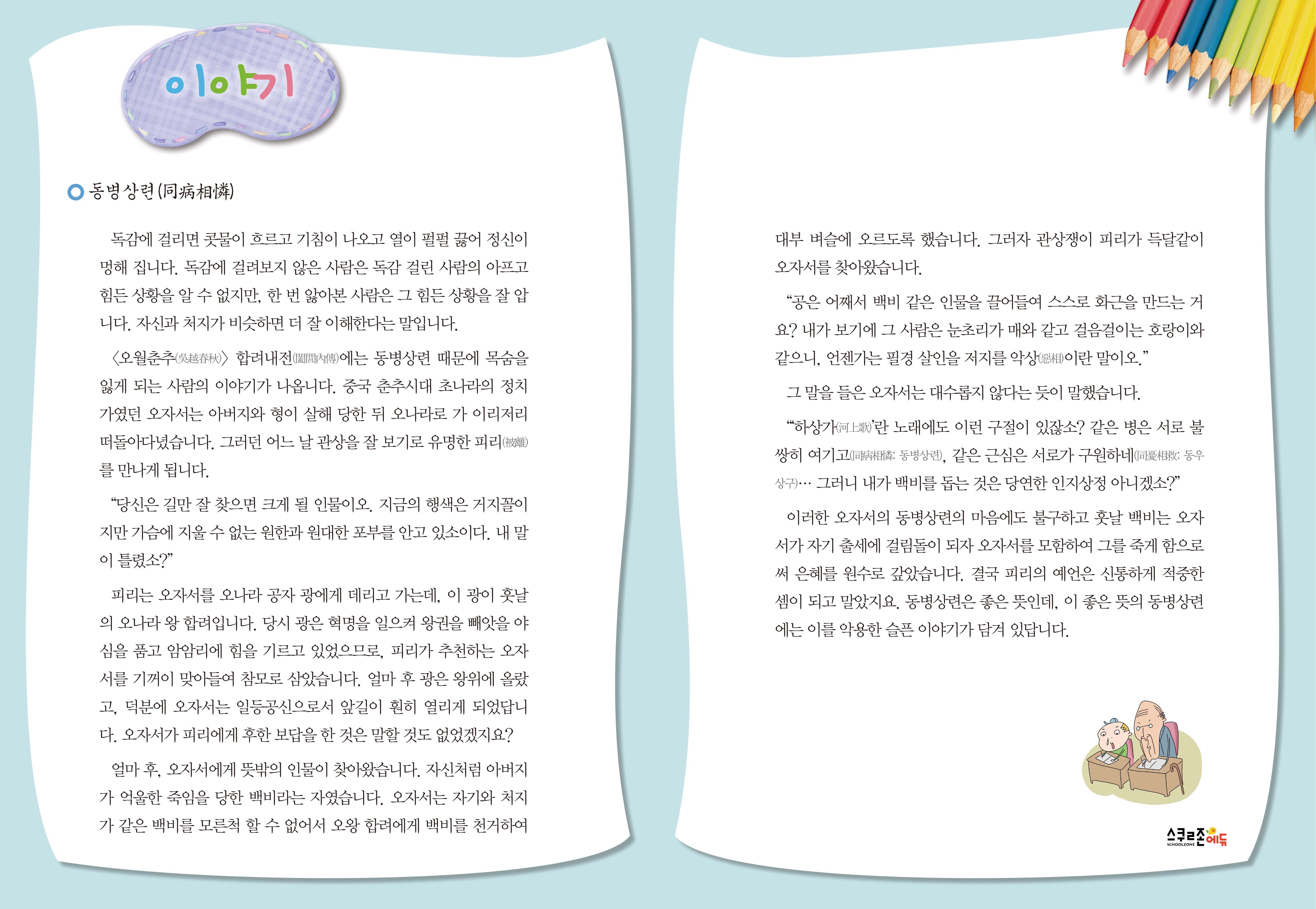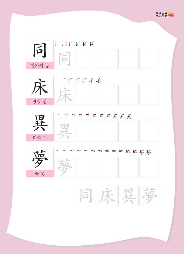 한글과 한자를 함께 쓰고, 유래 이야기와 예문을 통해 자연스럽게 의미를 익힙니다.