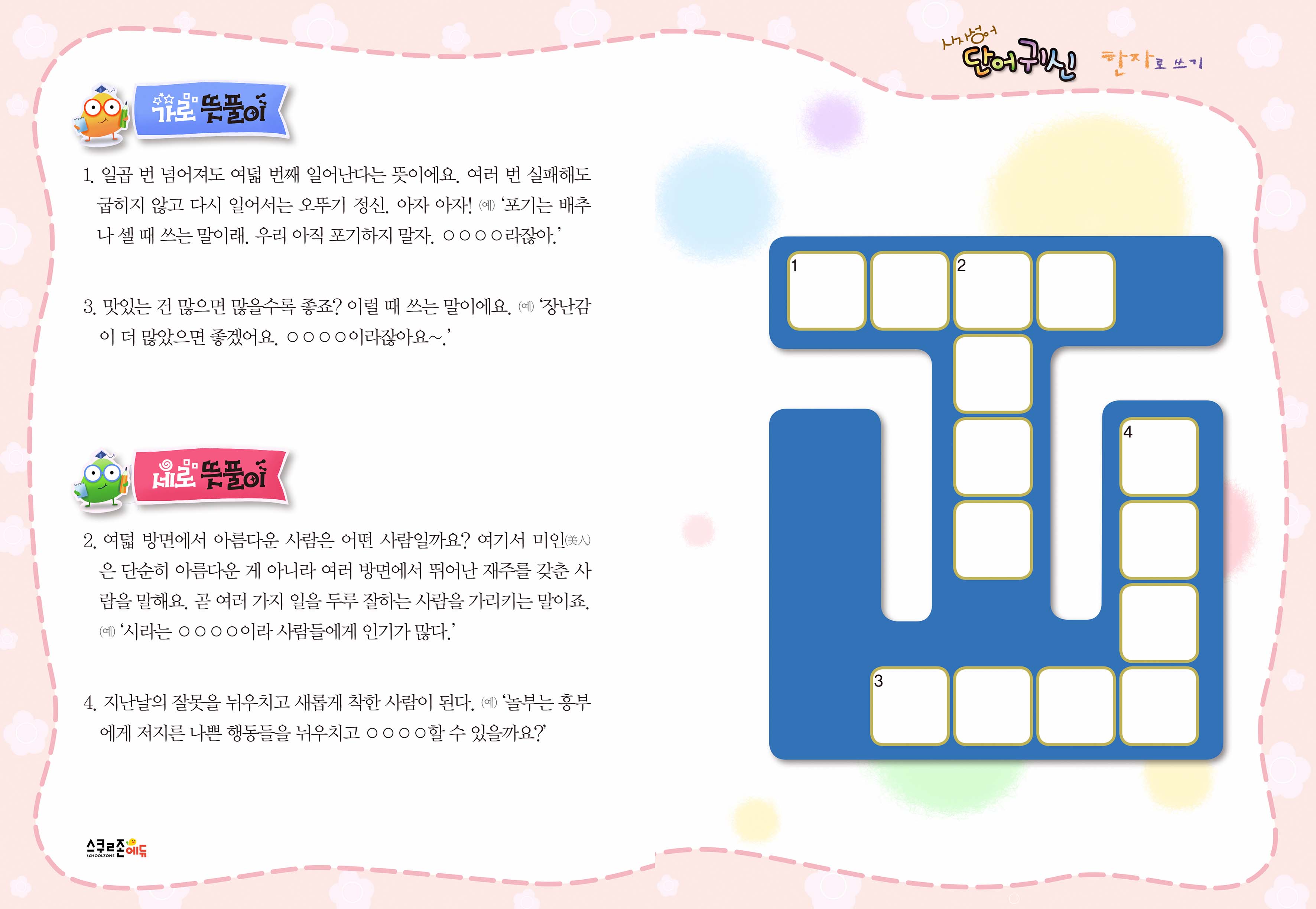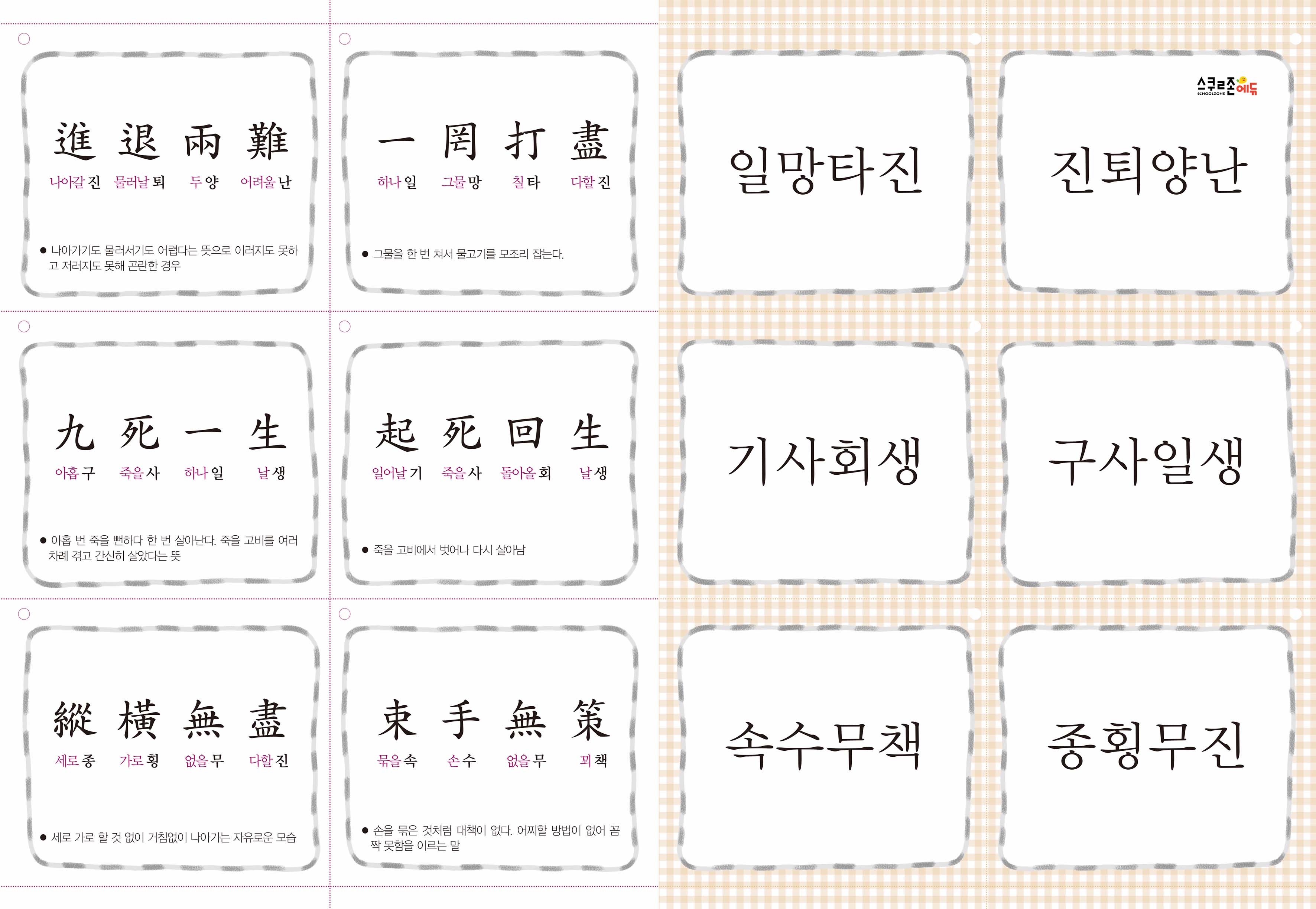 한자 퍼즐과 단어장으로 사자성어를 쉽고 재미있게 익히며