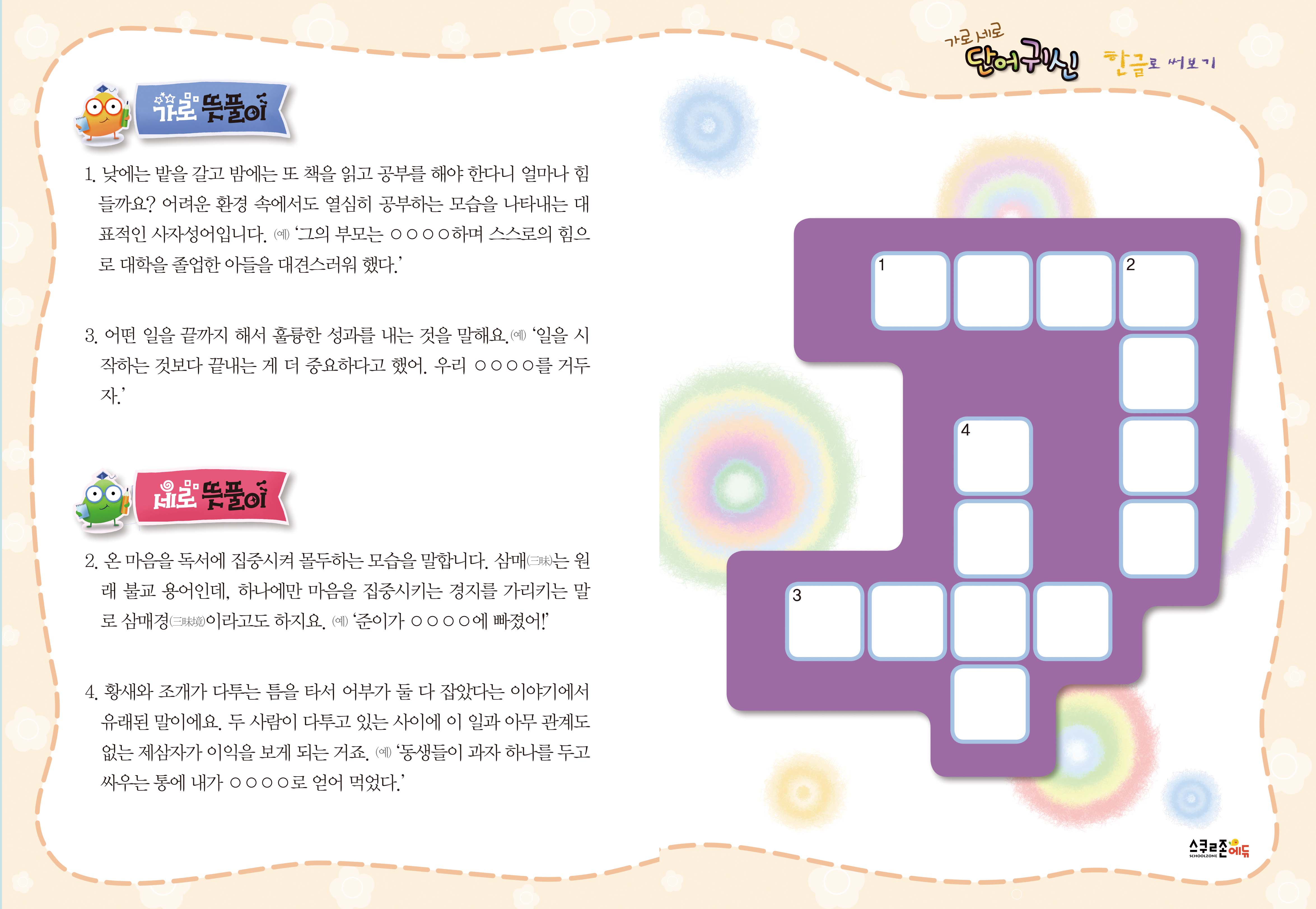 한자 퍼즐과 단어장으로 사자성어를 쉽고 재미있게 익히며