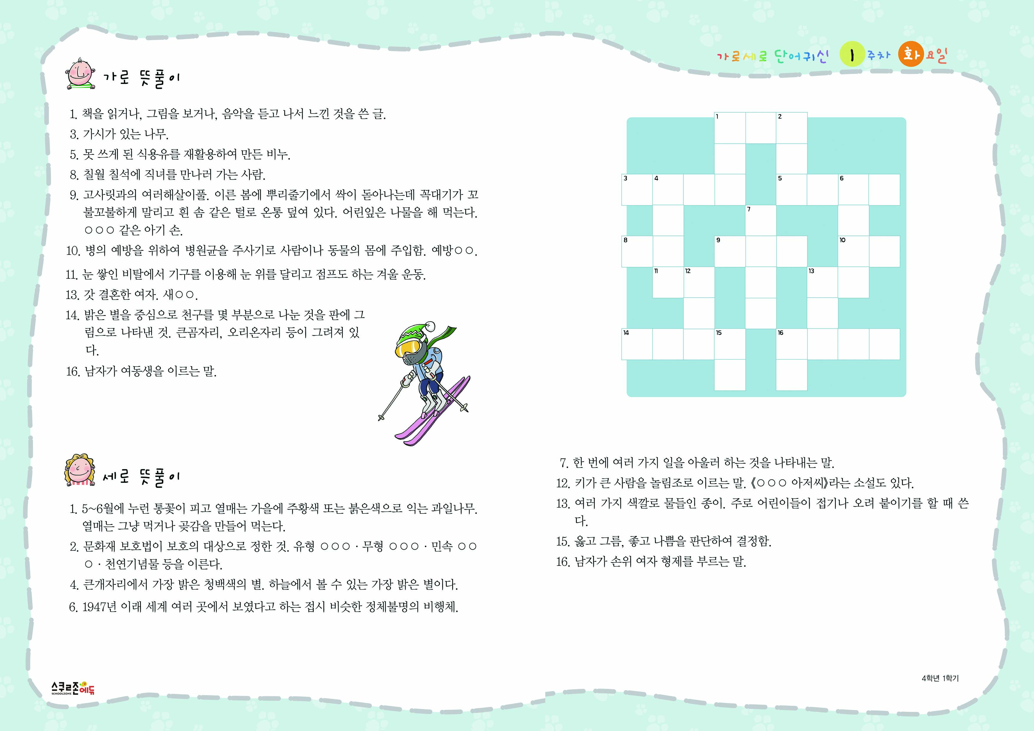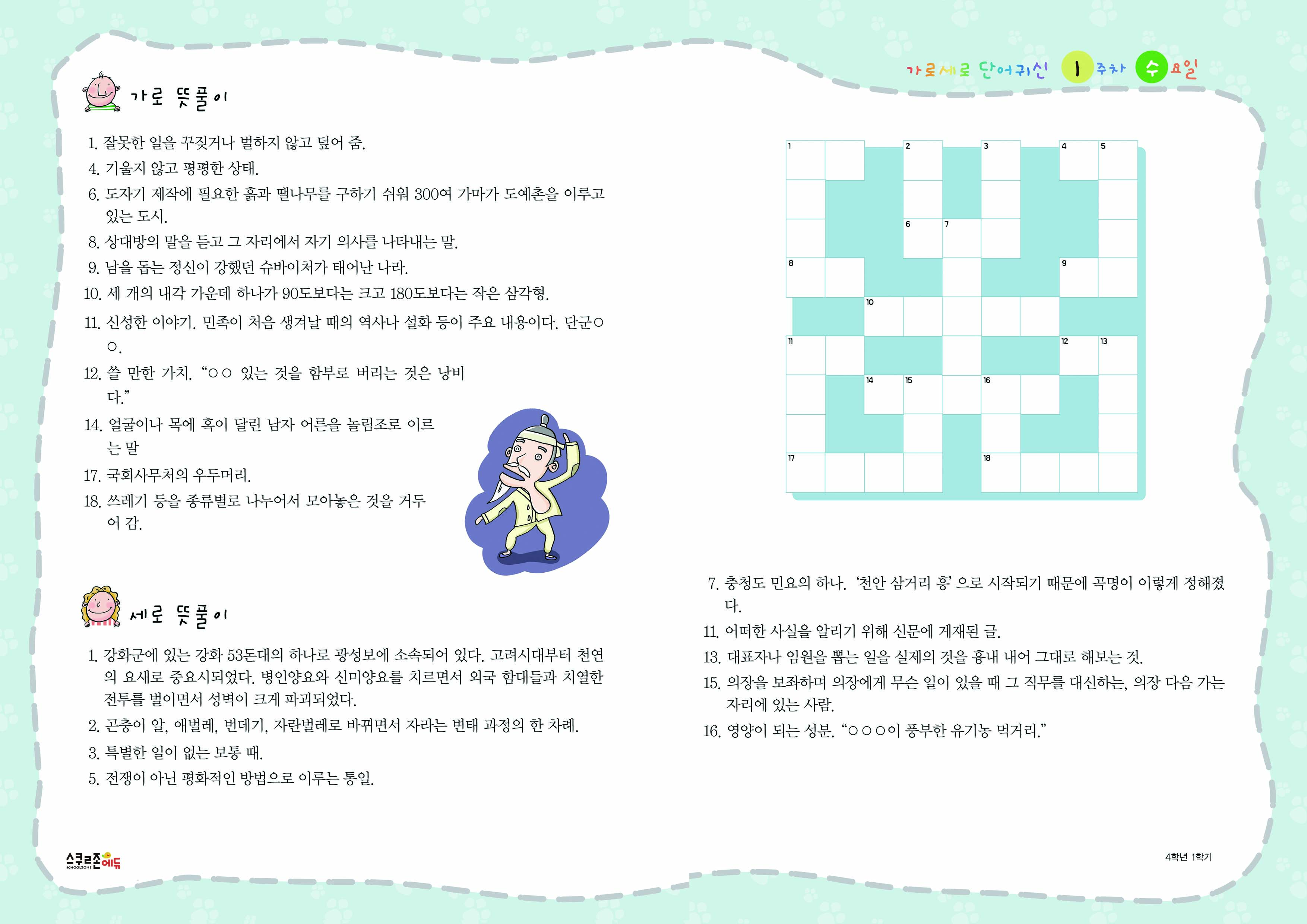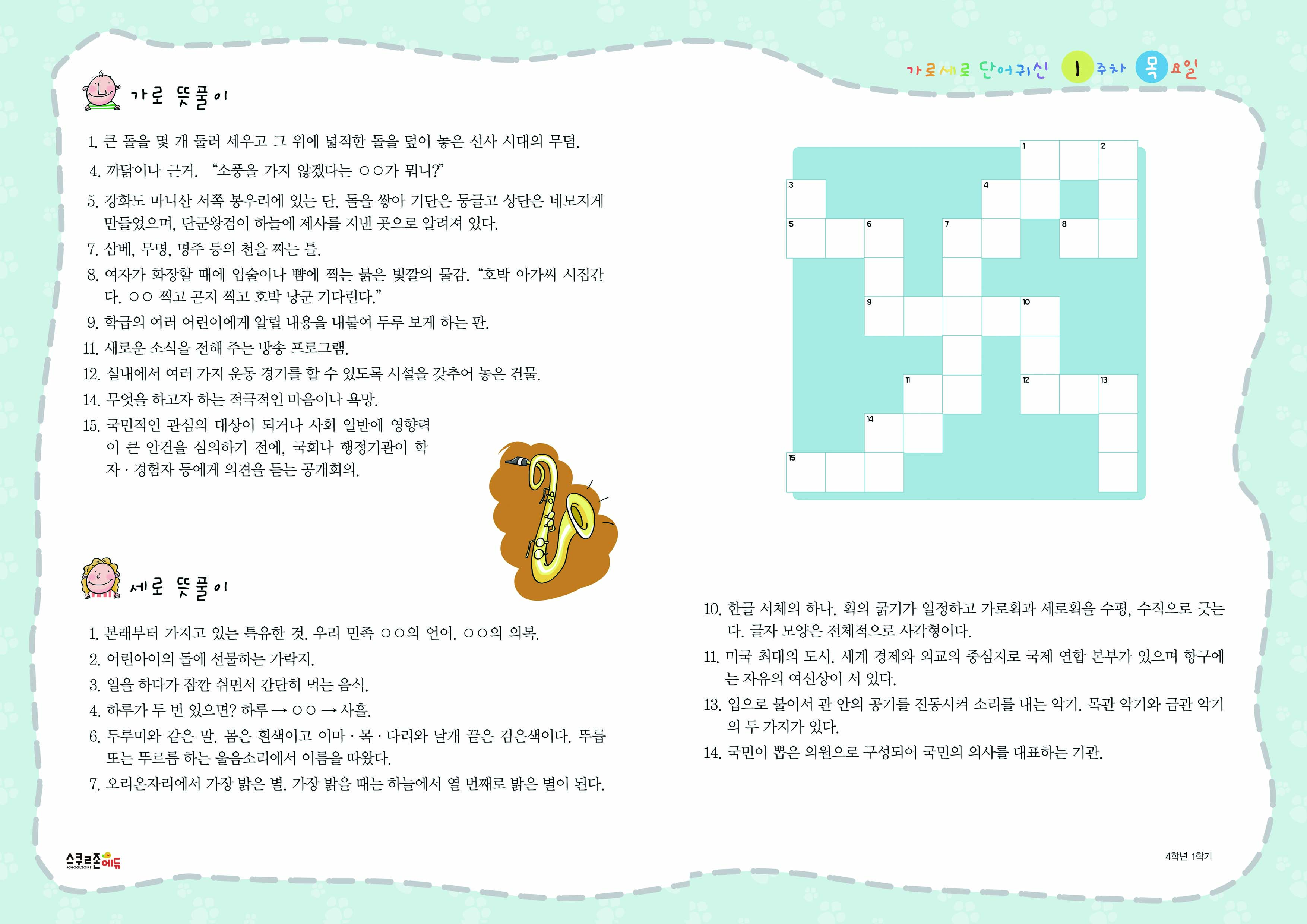 가로세로 단어귀신 4-1 1주차 시트지(PDF / 11p / A4사이즈)