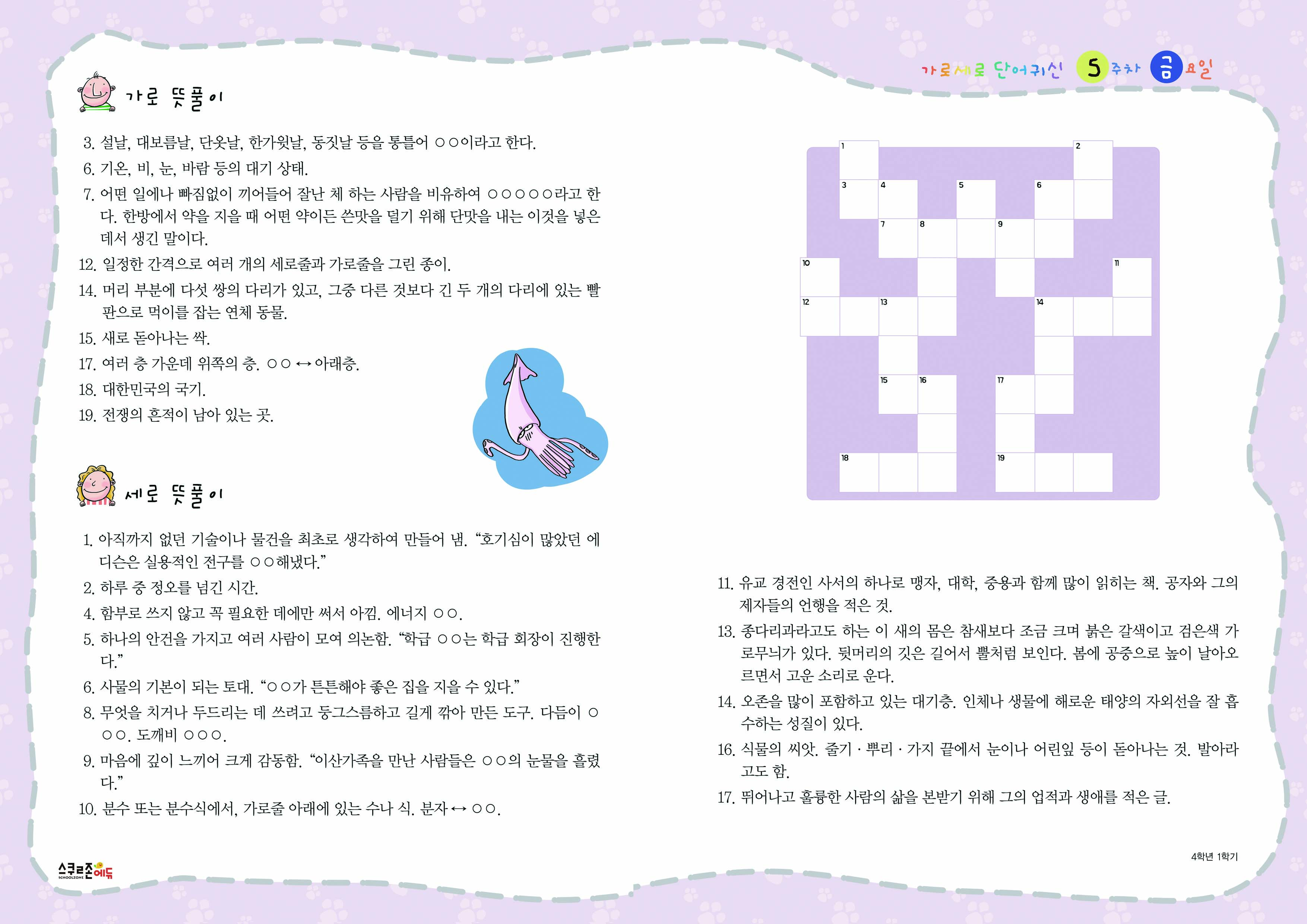 가로세로 단어귀신 4-1 5주차 시트지(PDF / 11P / A4 사이즈)