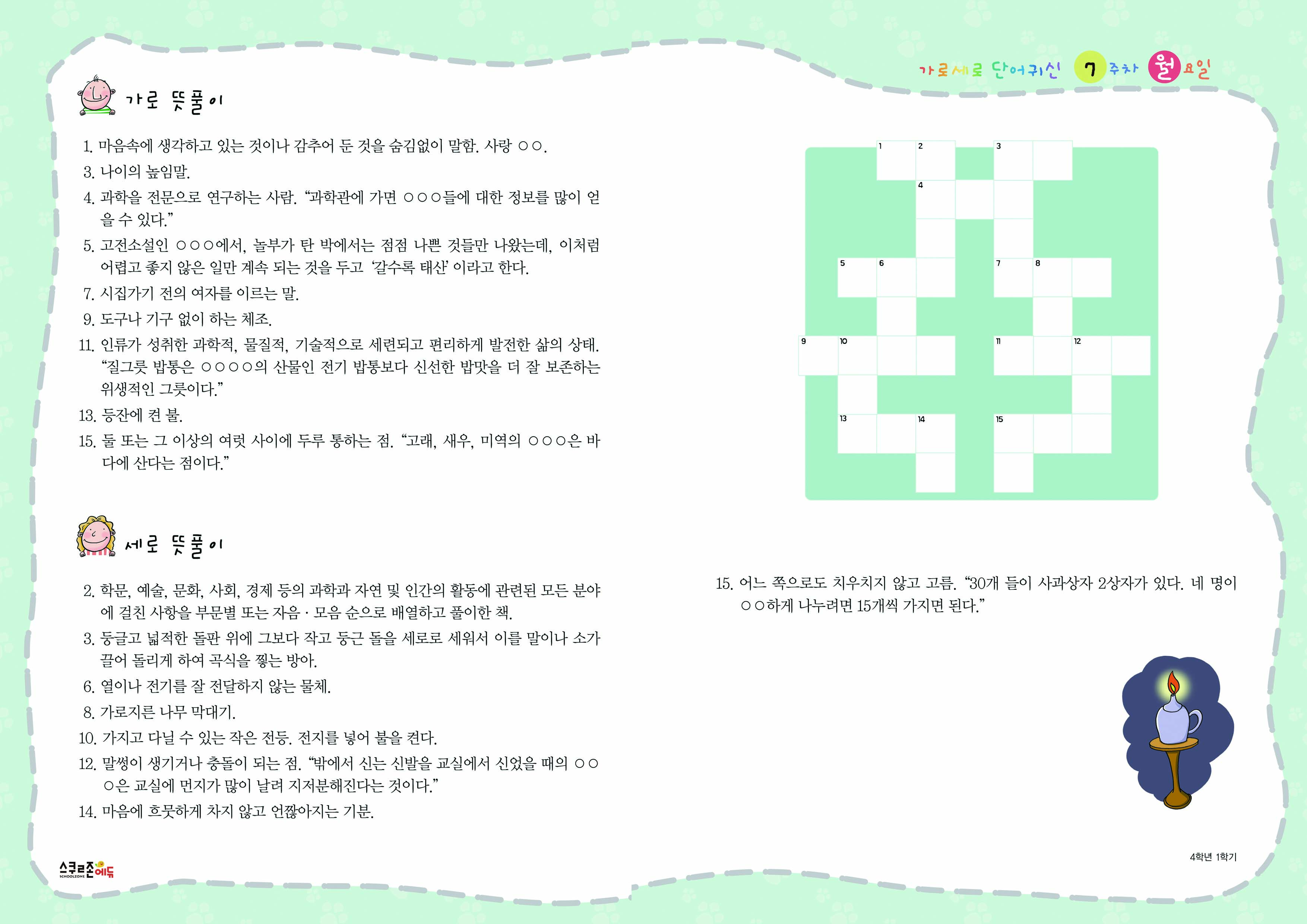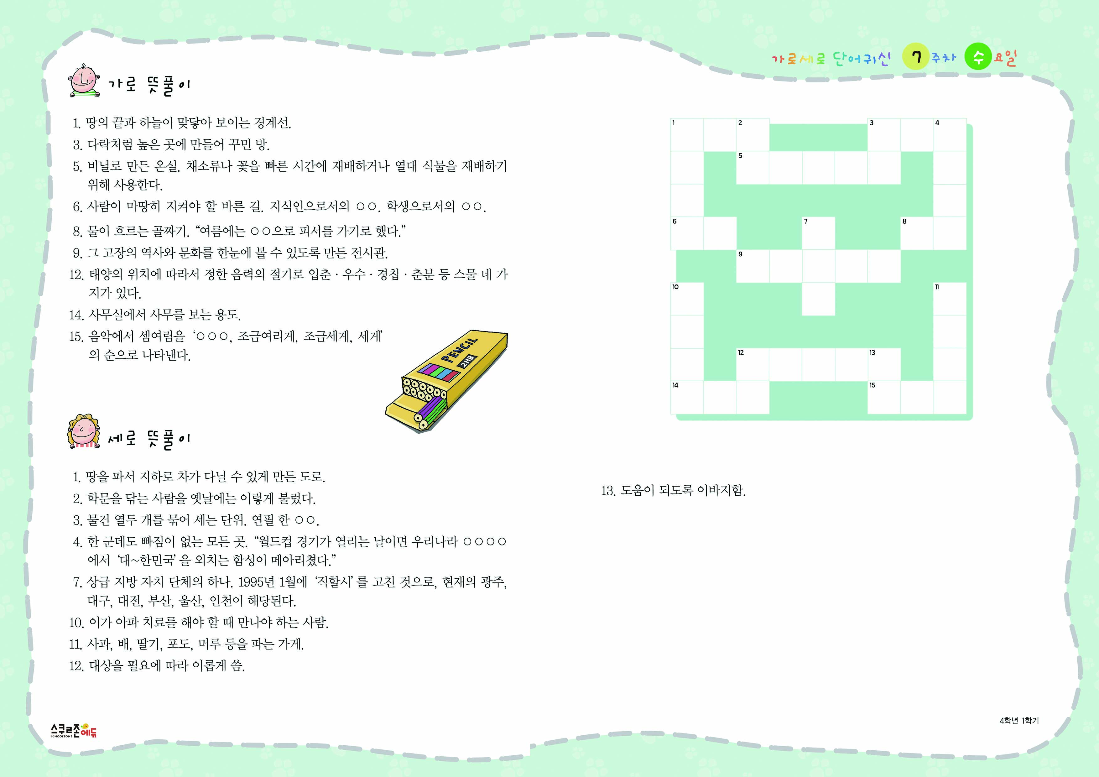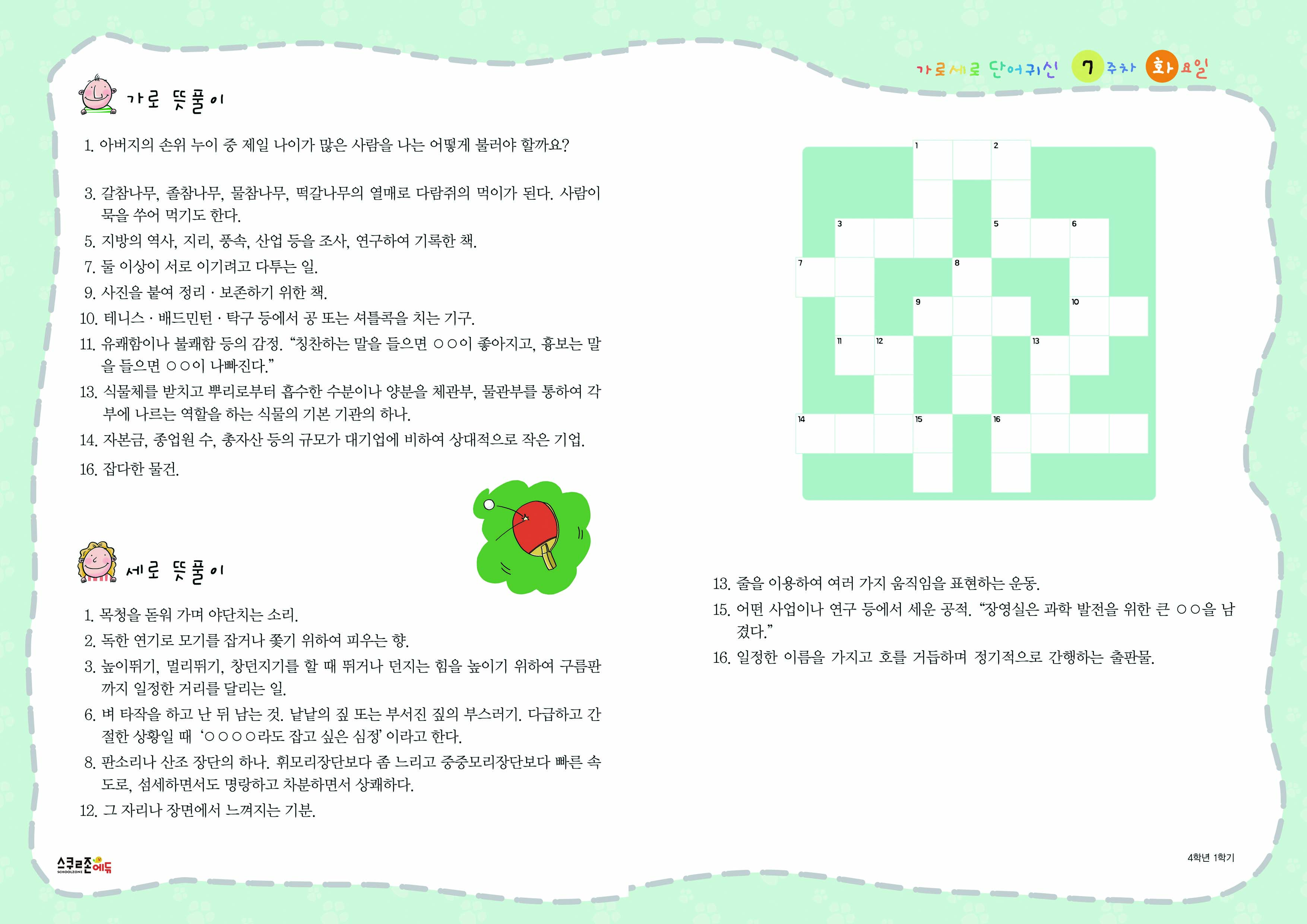 가로세로 단어귀신 4-1 7주차 시트지(PDF / 11P / A4 사이즈)