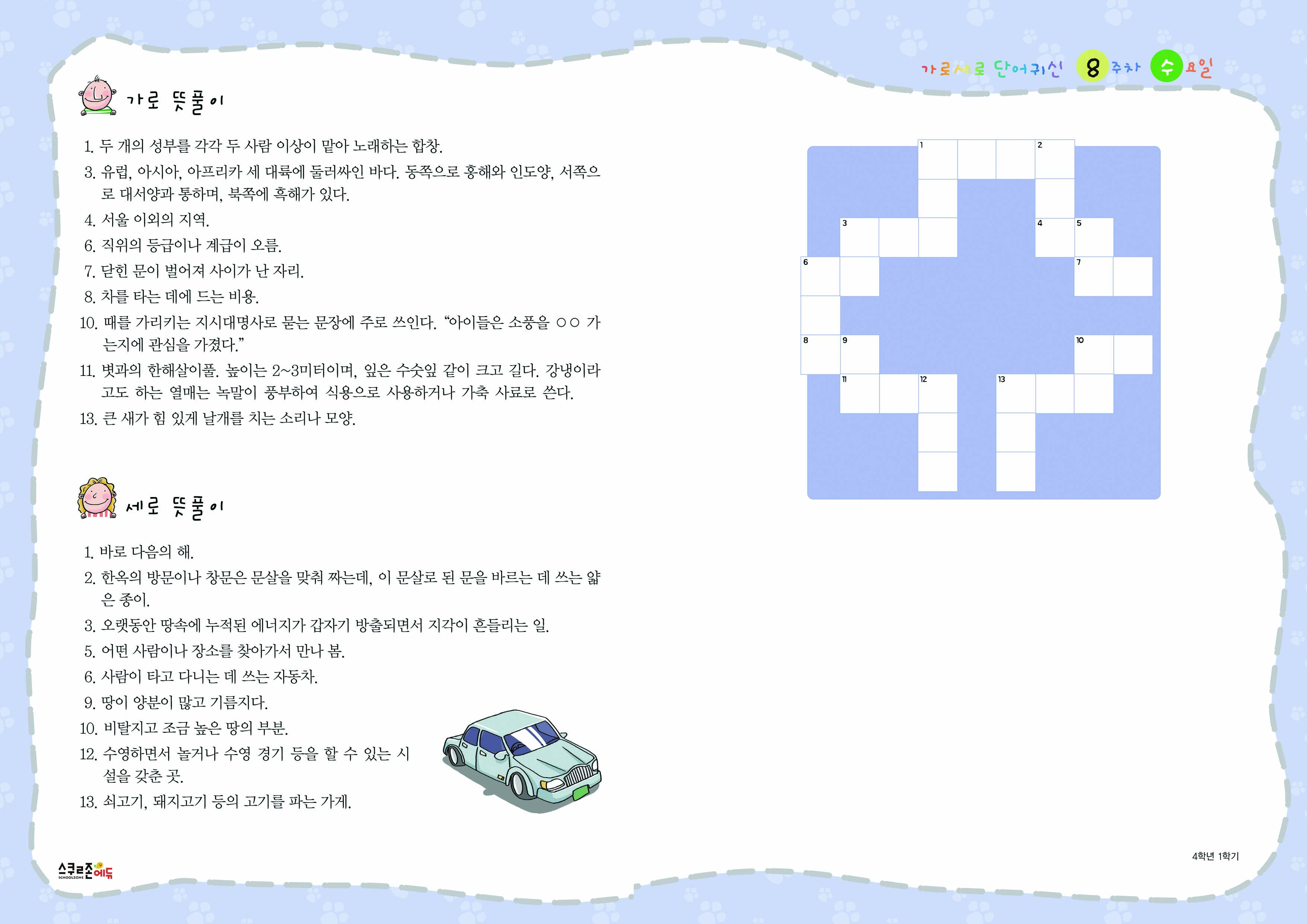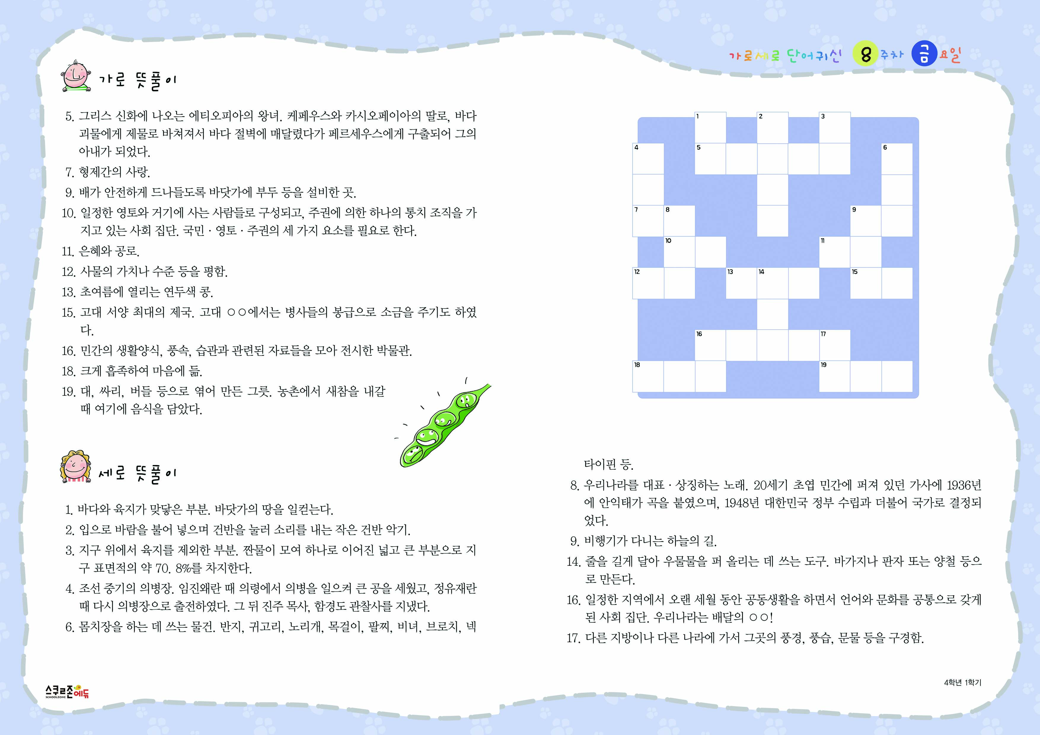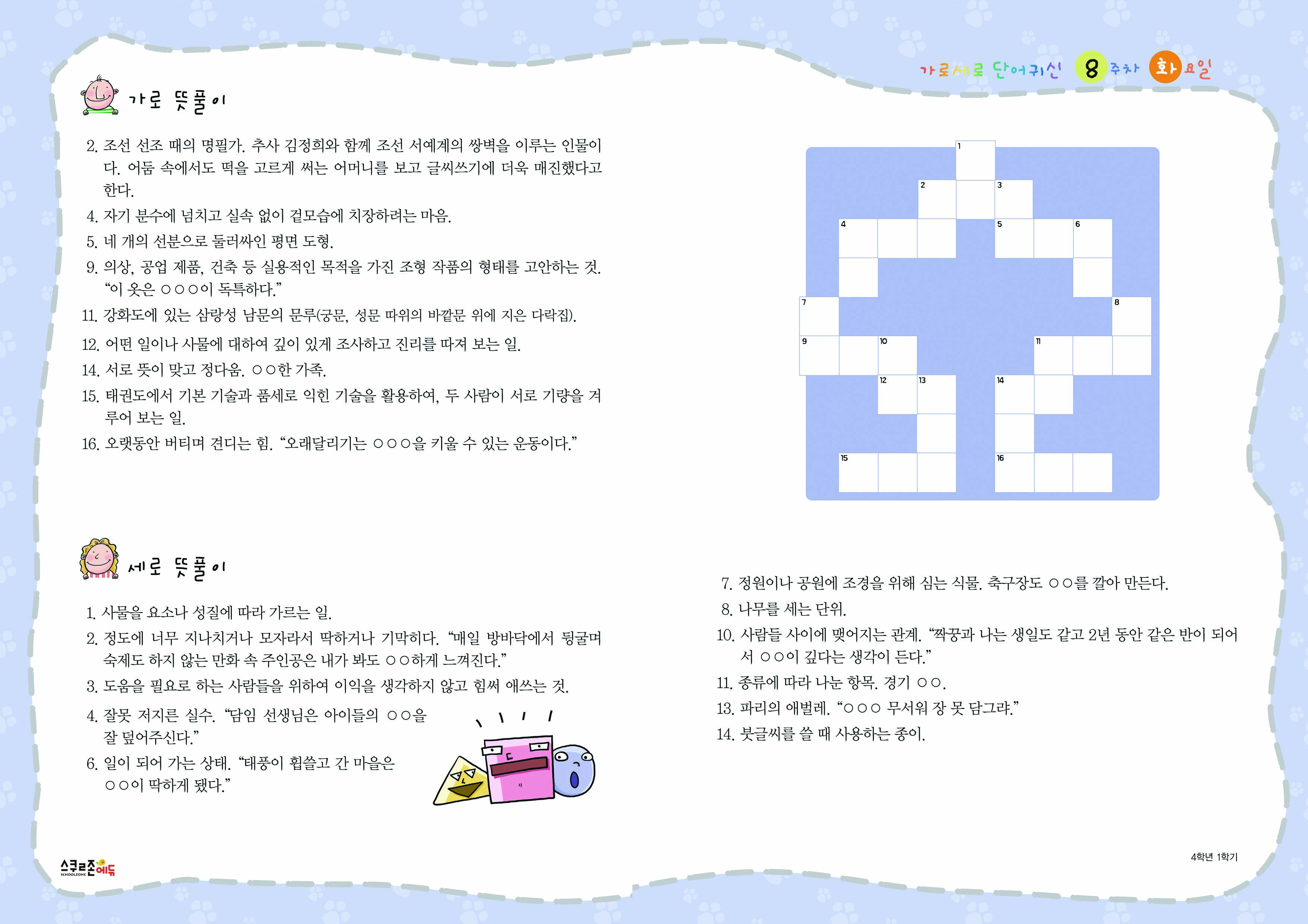 가로세로 단어귀신 4-1 8주차 시트지(PDF / 11P / A4 사이즈)