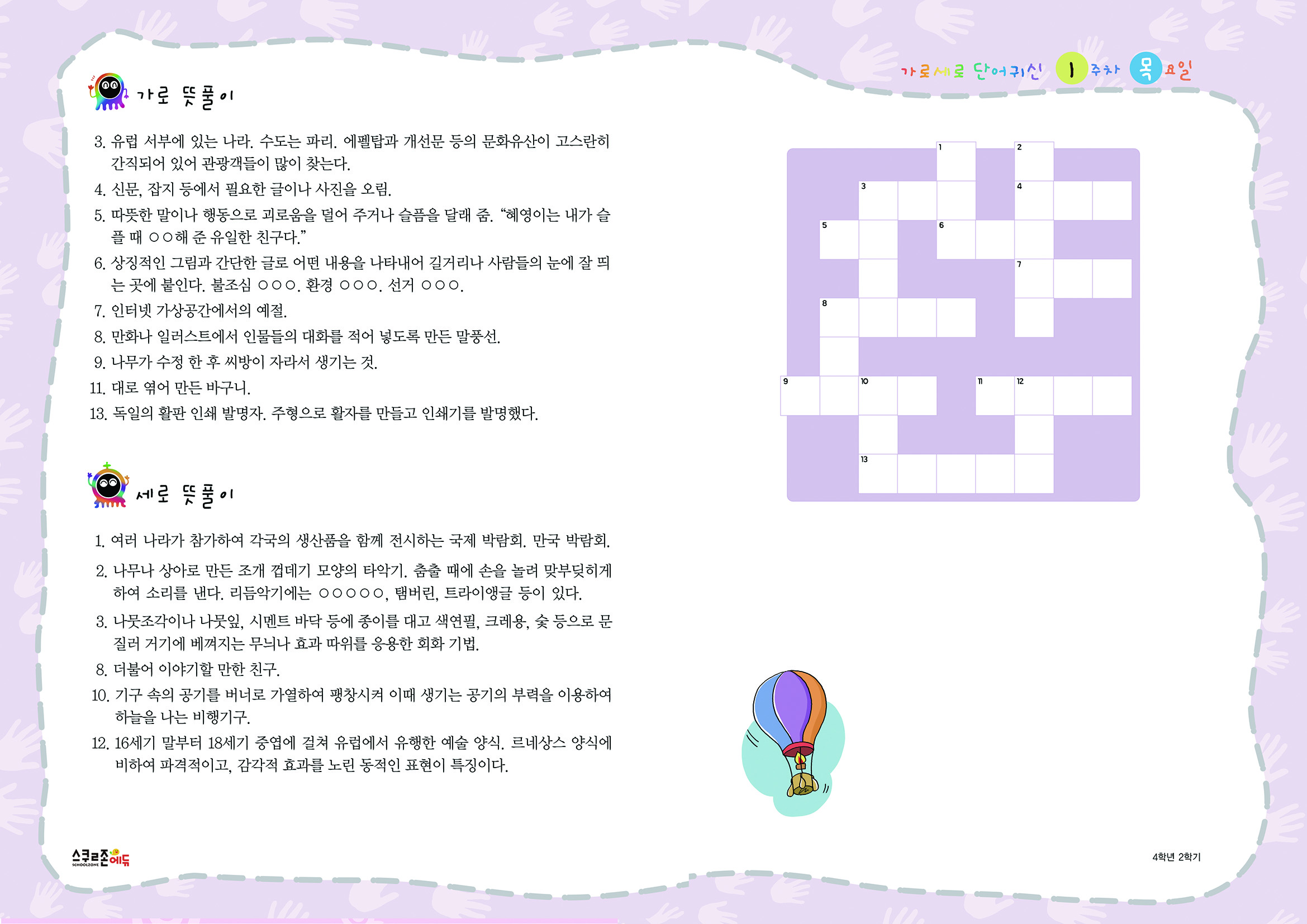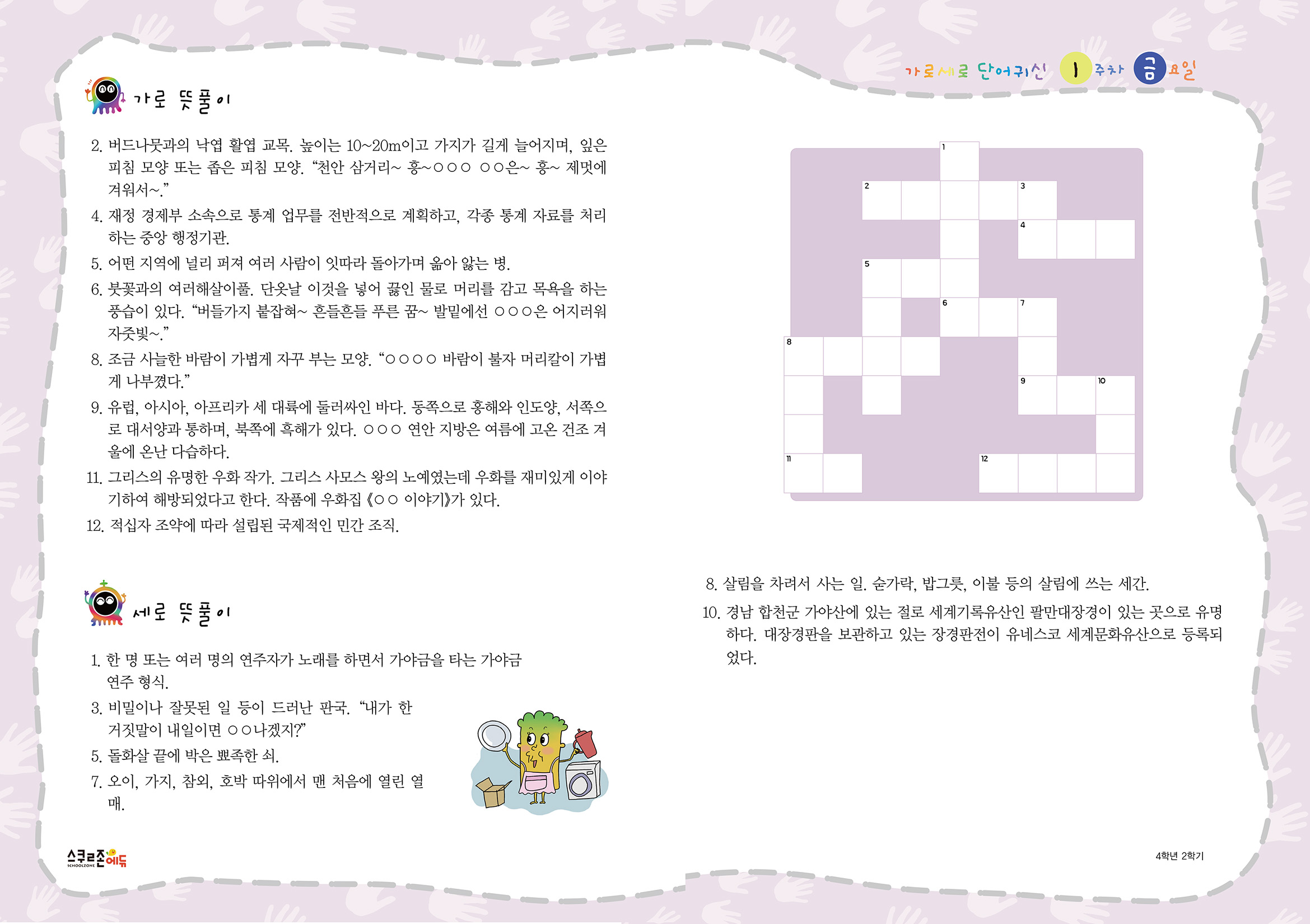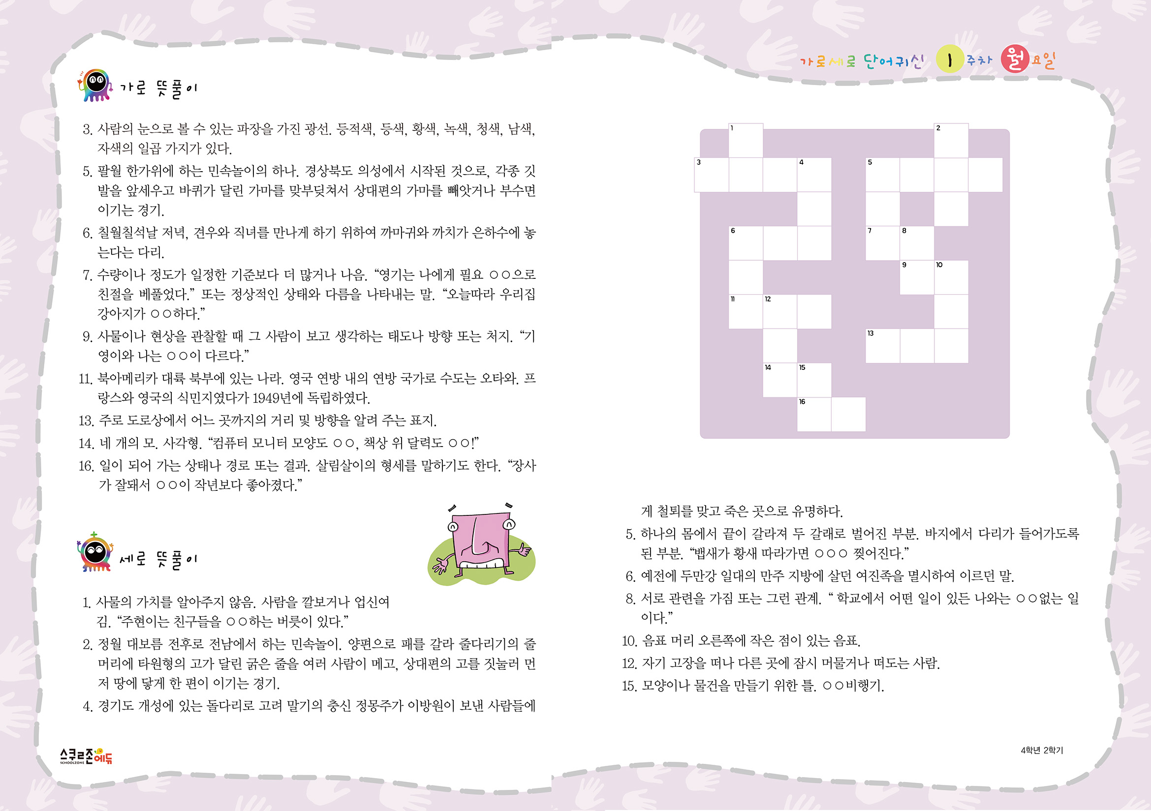 가로세로 단어귀신 4-2 1주차 시트지(PDF / 11P / A4사이즈)