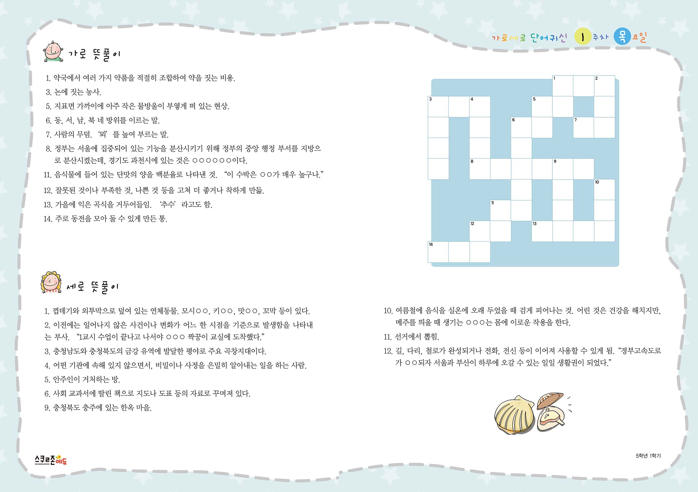 가로세로 단어귀신 5-1 1주차 시트지(PDF / 11P / A4사이즈)