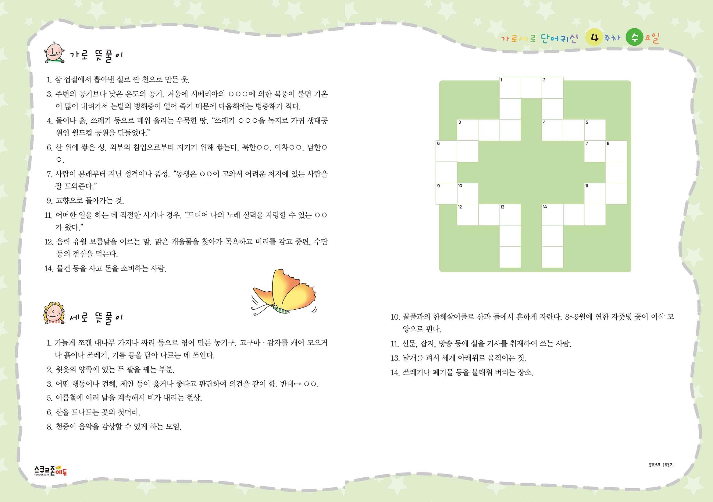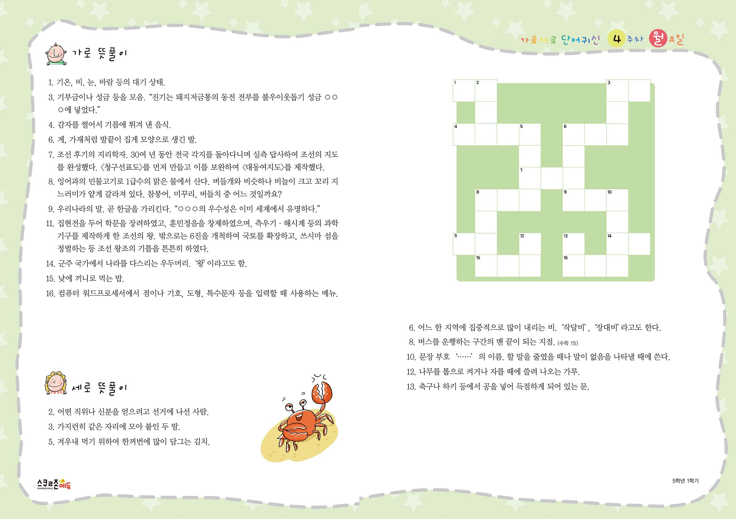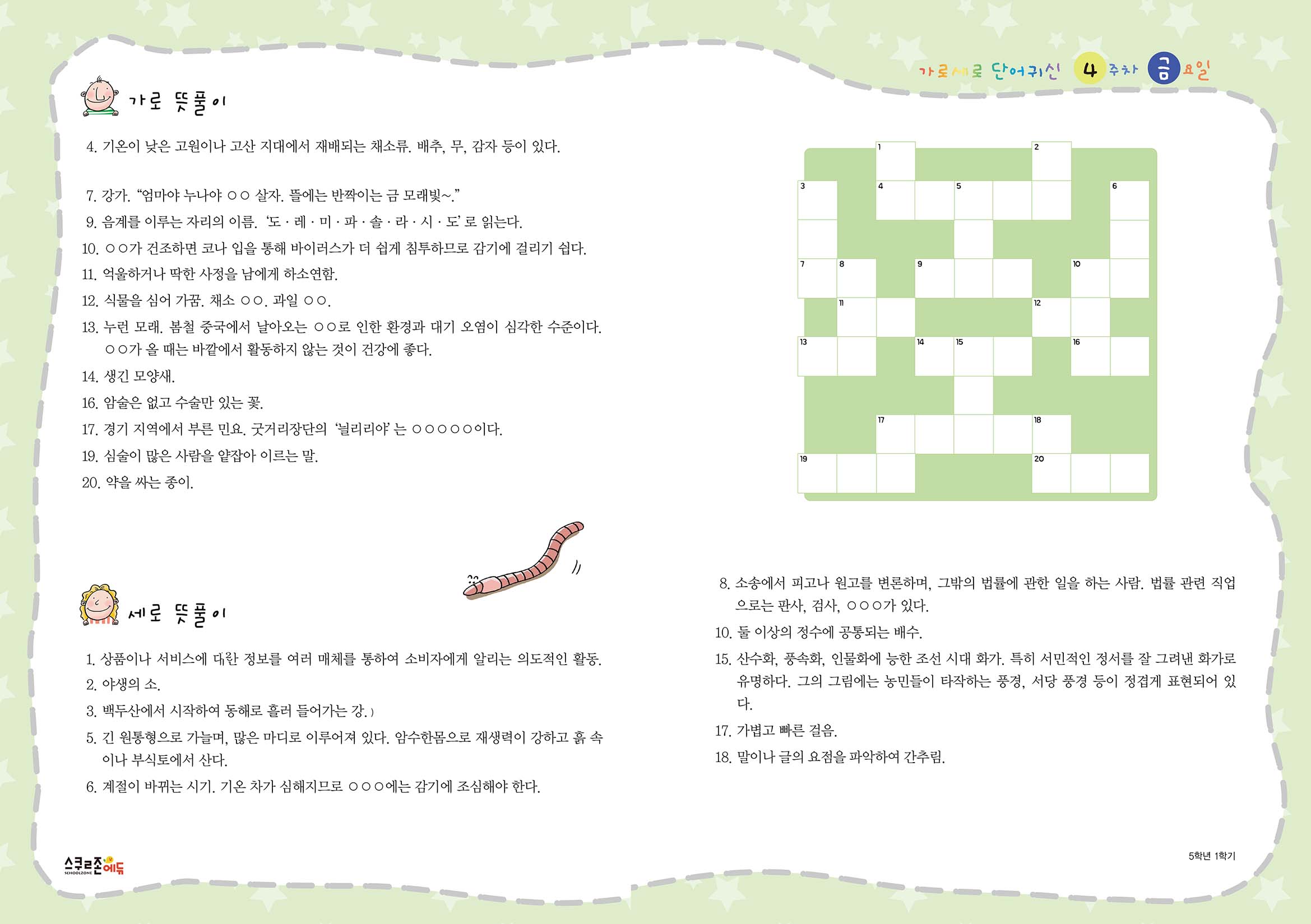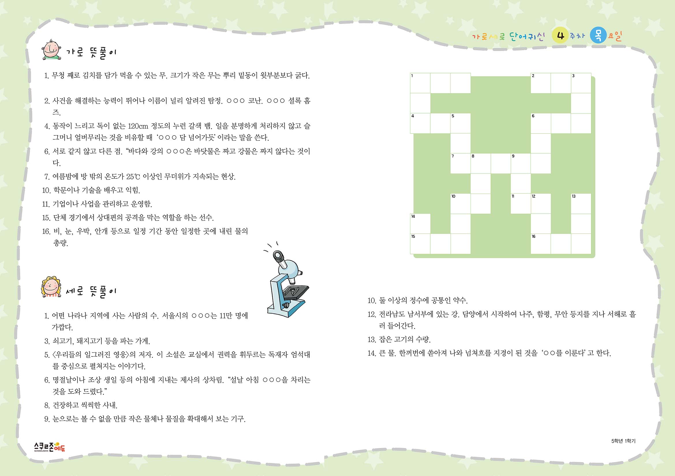 가로세로 단어귀신 5-1 4주차 시트지(PDF / 11P / A4사이즈)