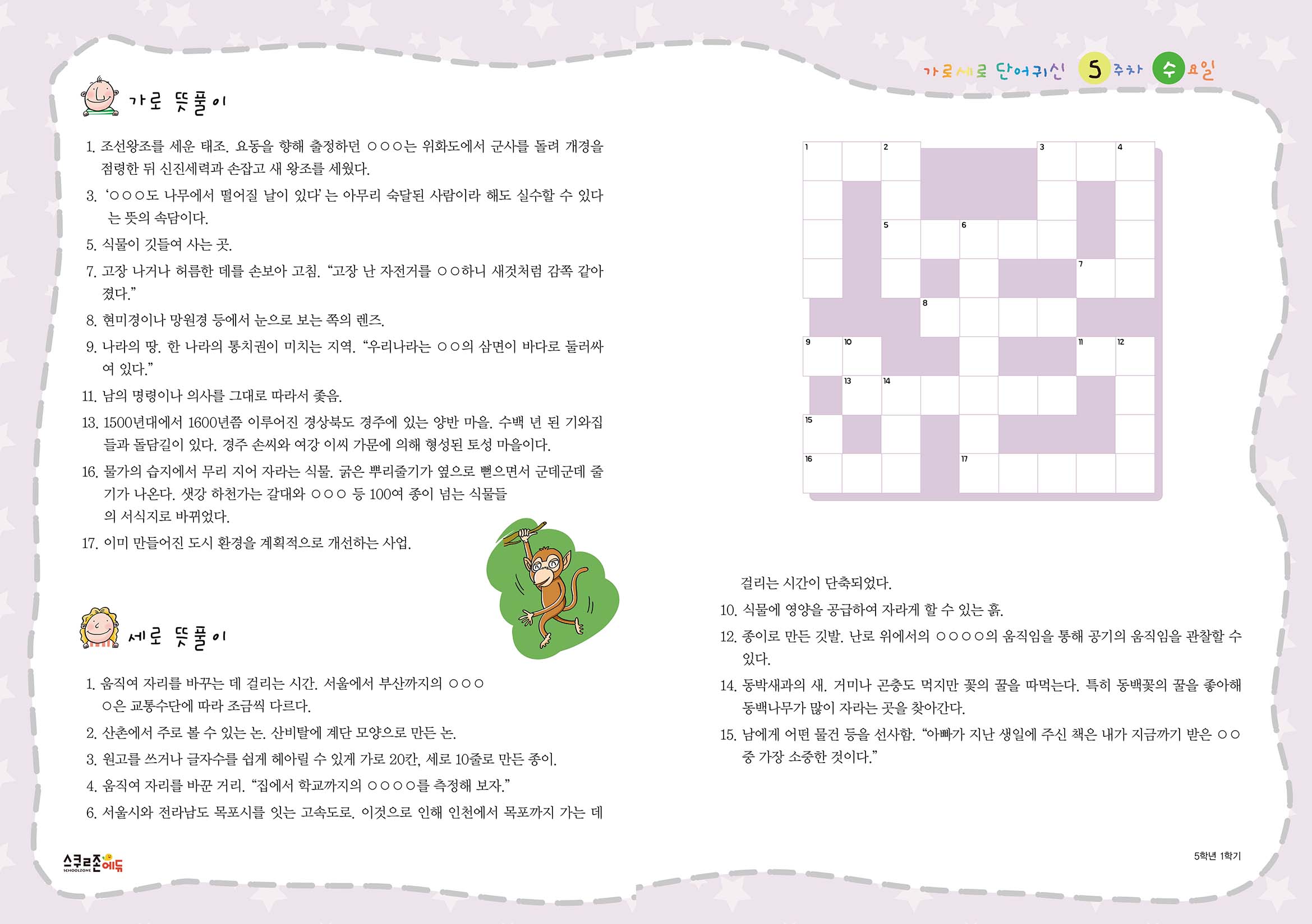 가로세로 단어귀신 5-1 5주차 시트지(PDF / 11P / A4사이즈)