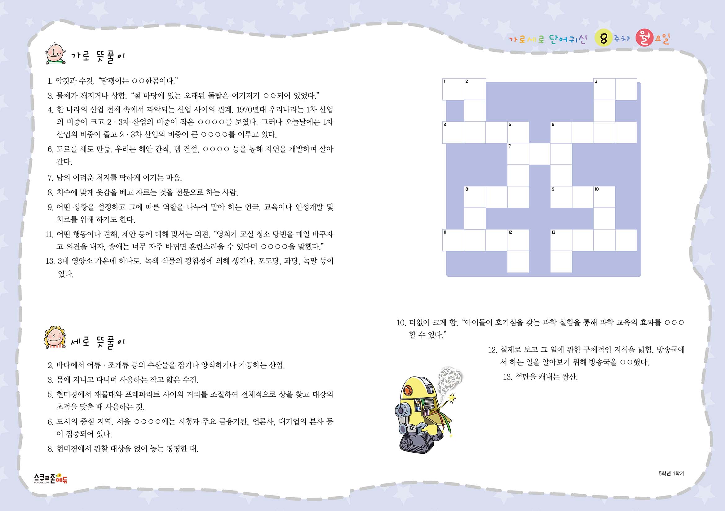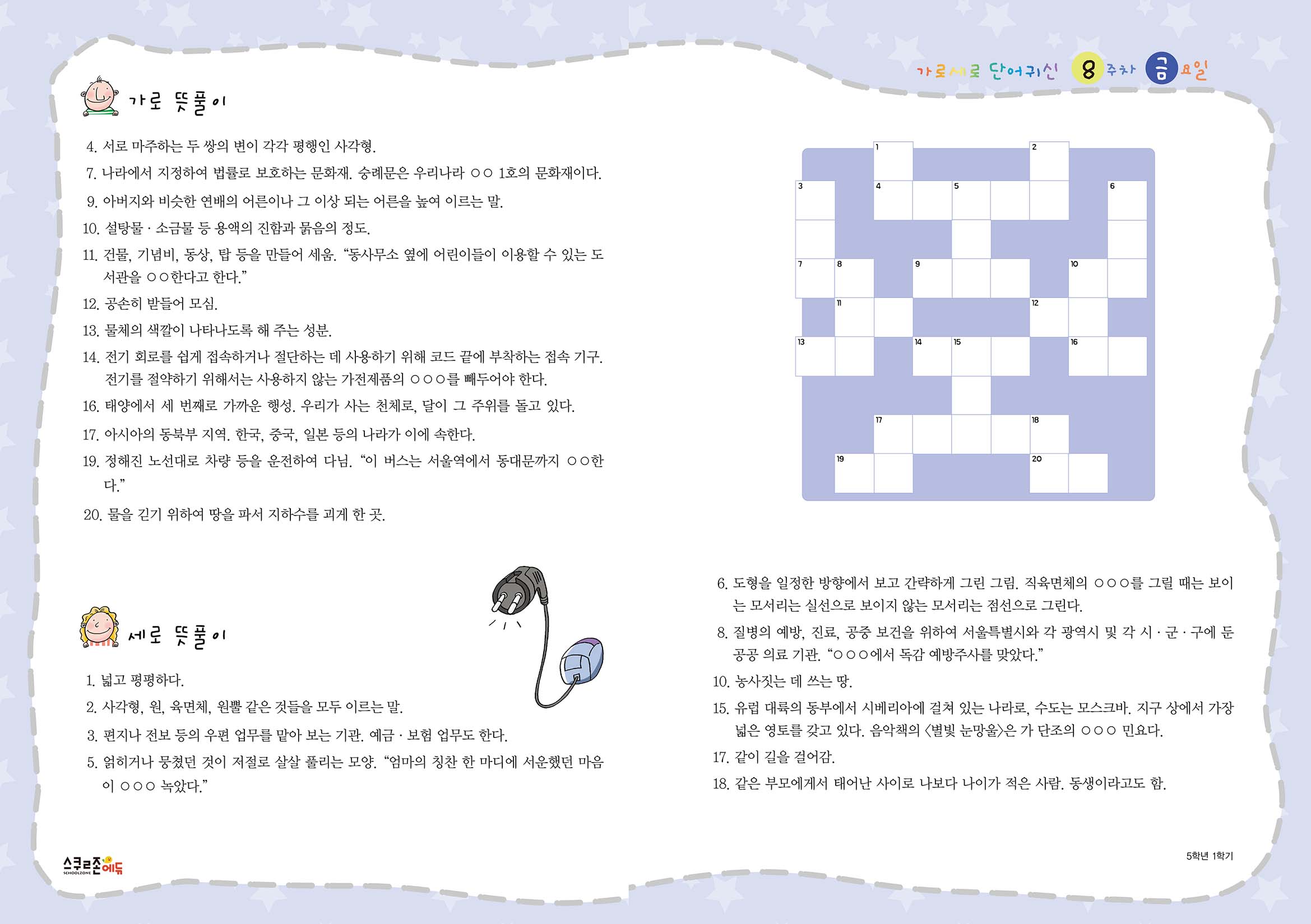 가로세로 단어귀신 5-1 8주차 시트지(PDF / 11P / A4사이즈)