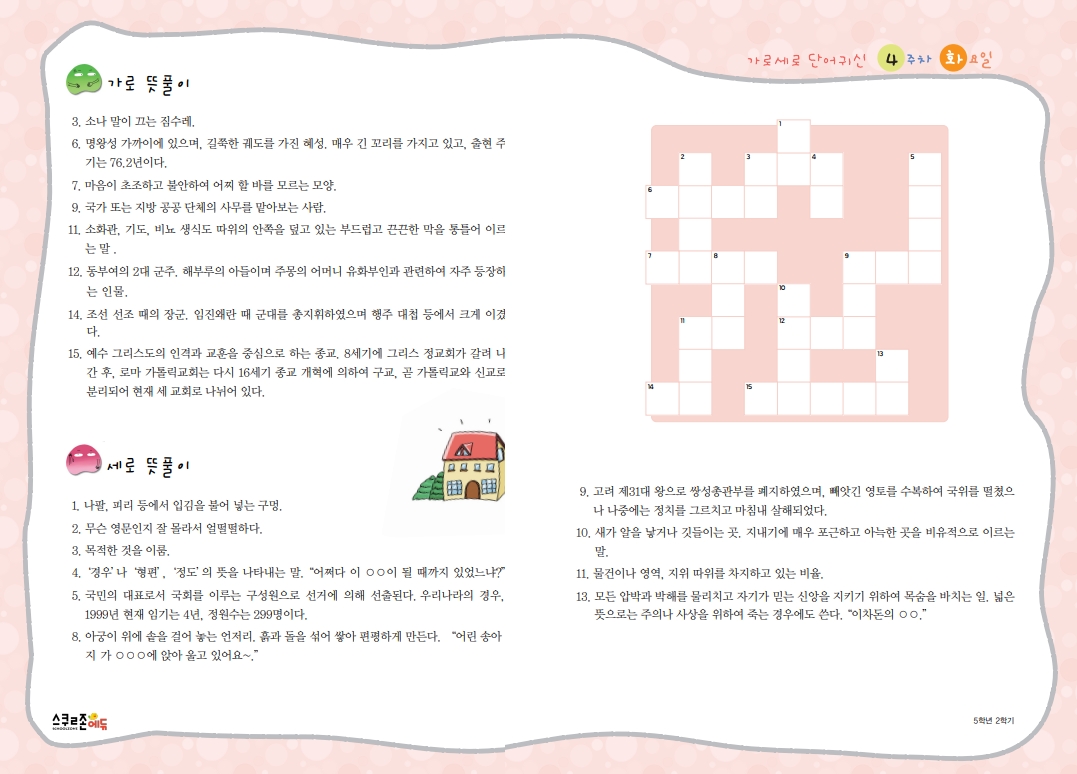 가로세로 단어귀신 5-2 4주차 시트지(PDF / 11P / A4사이즈)