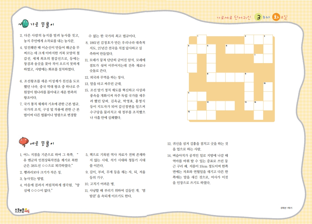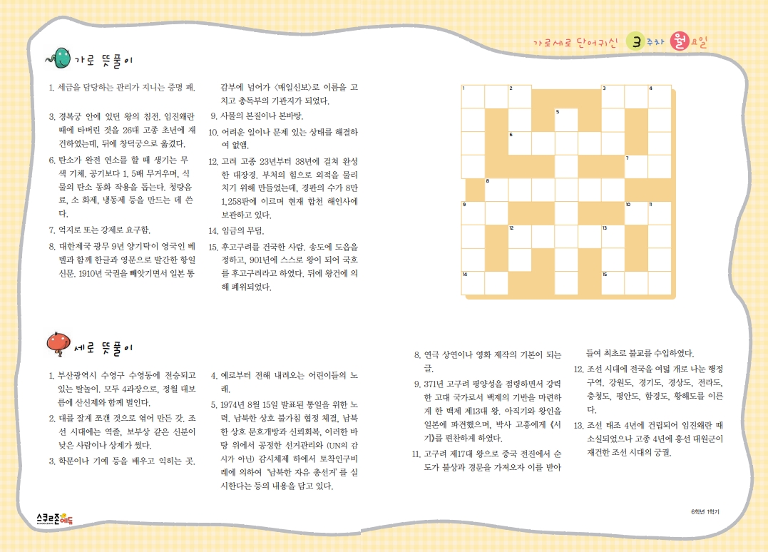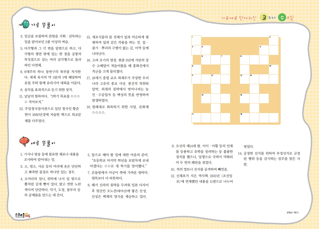 가로세로 단어귀신 6-1 3주차 시트지(PDF / 12P / A4사이즈)