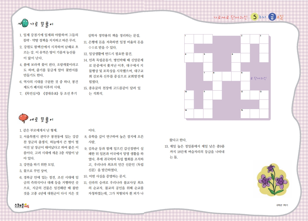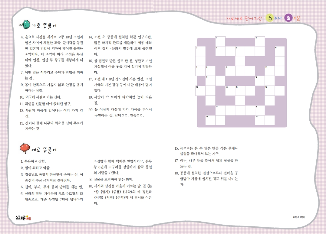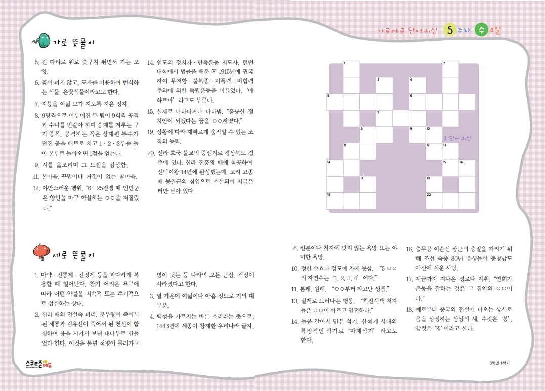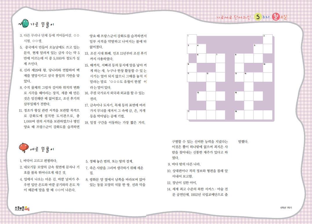 가로세로 단어귀신 6-1 5주차 시트지(PDF / 12P / A4사이즈)