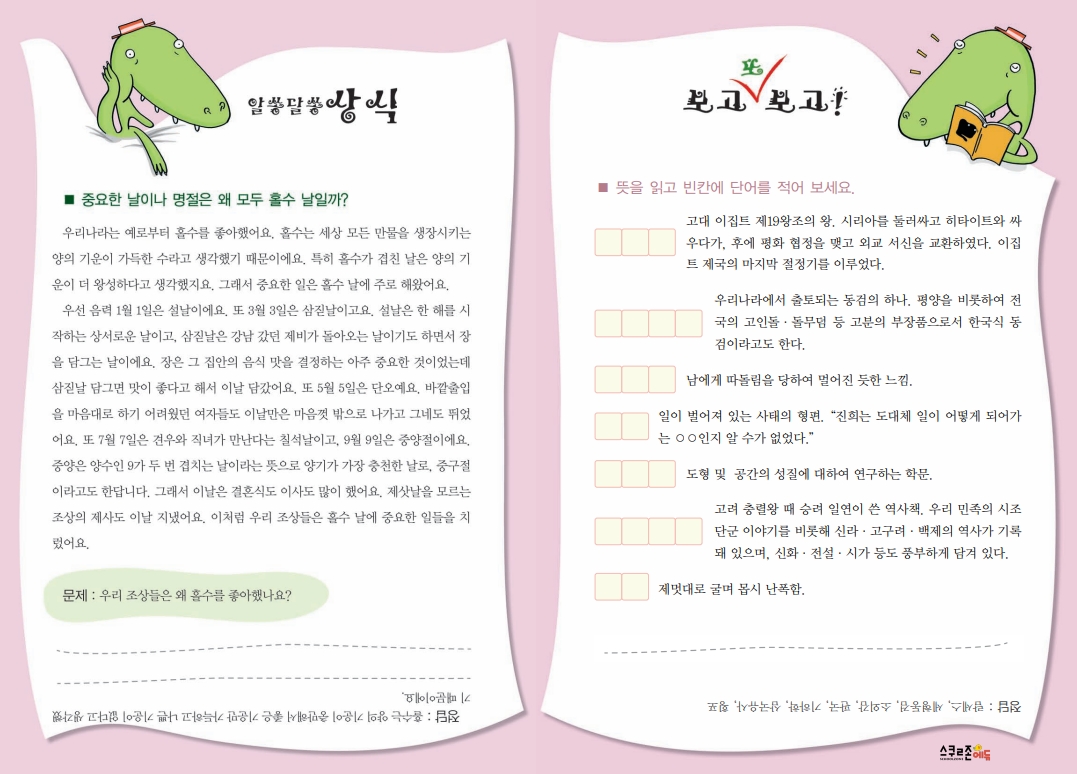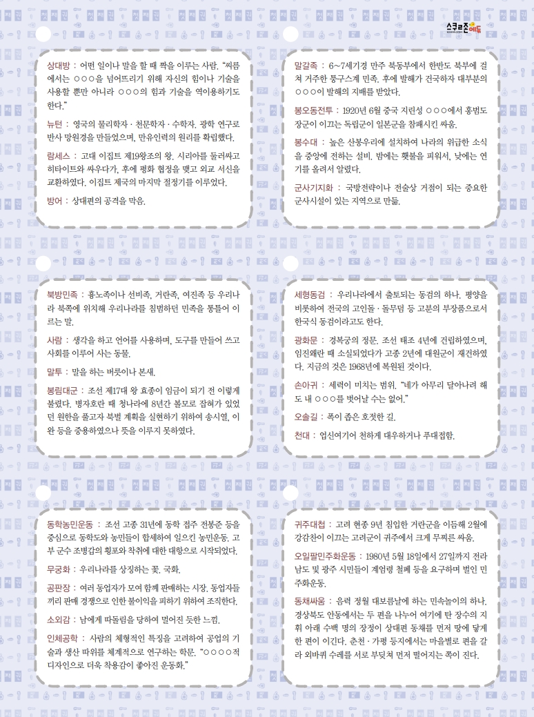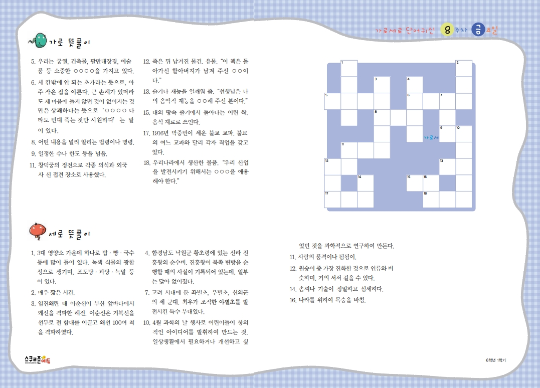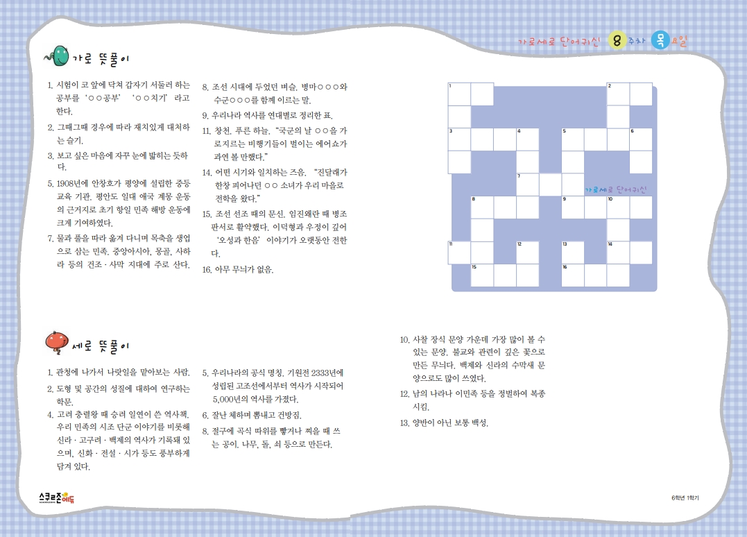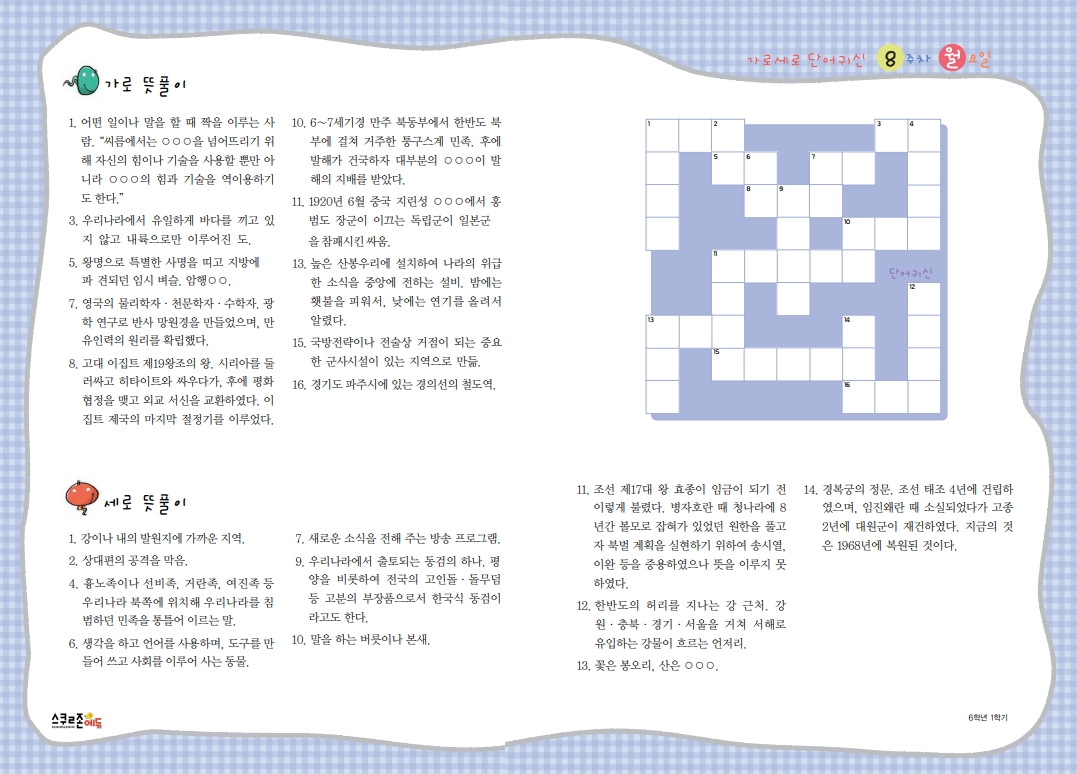 가로세로 단어귀신 6-1 8주차 시트지(PDF / 12P / A4사이즈)