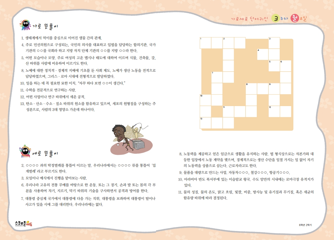 가로세로 단어귀신 6-2 3주차 시트지(PDF / 12P / A4사이즈)
